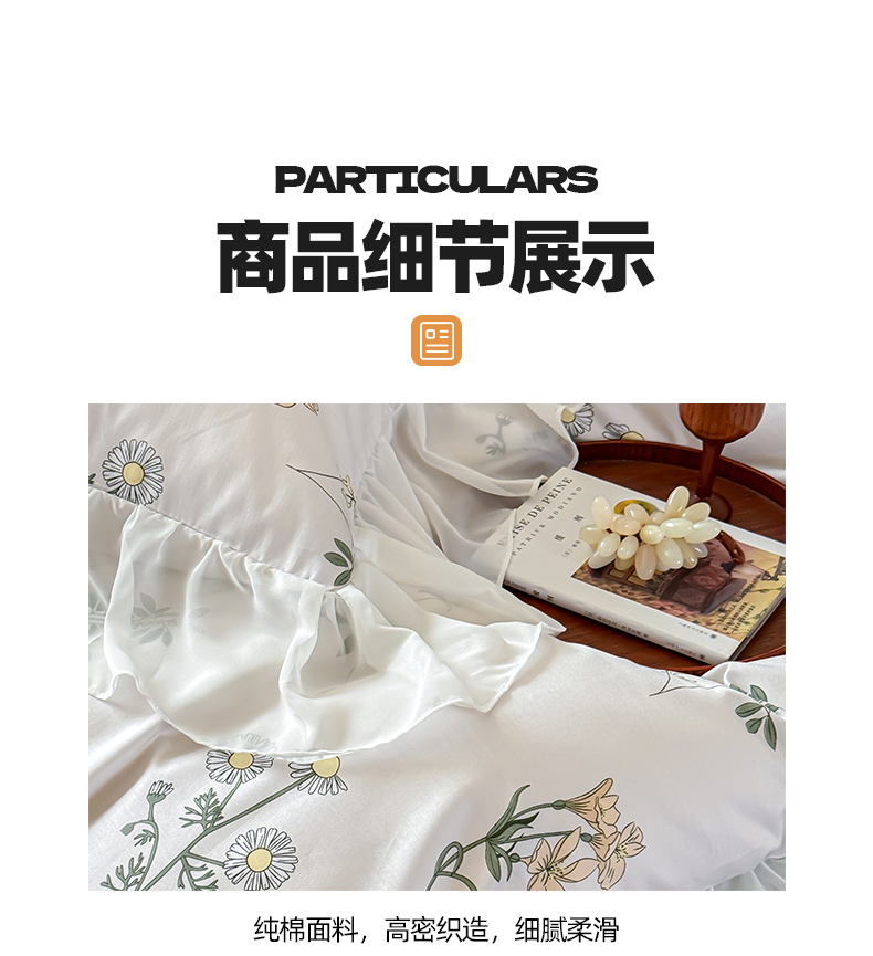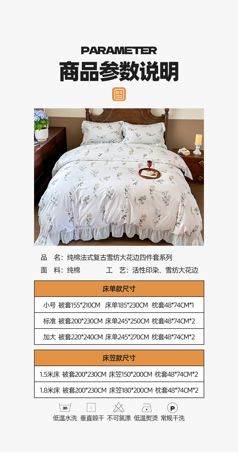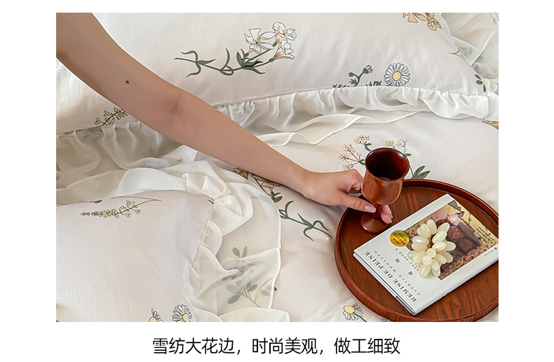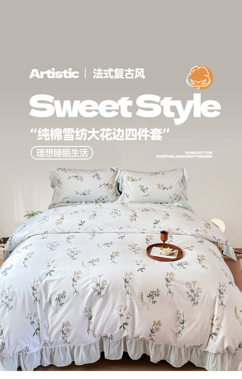商品名称:窝米 2024夏季纯棉法式复古雪纺大花边四件套系列第二批 玛奇朵花边款