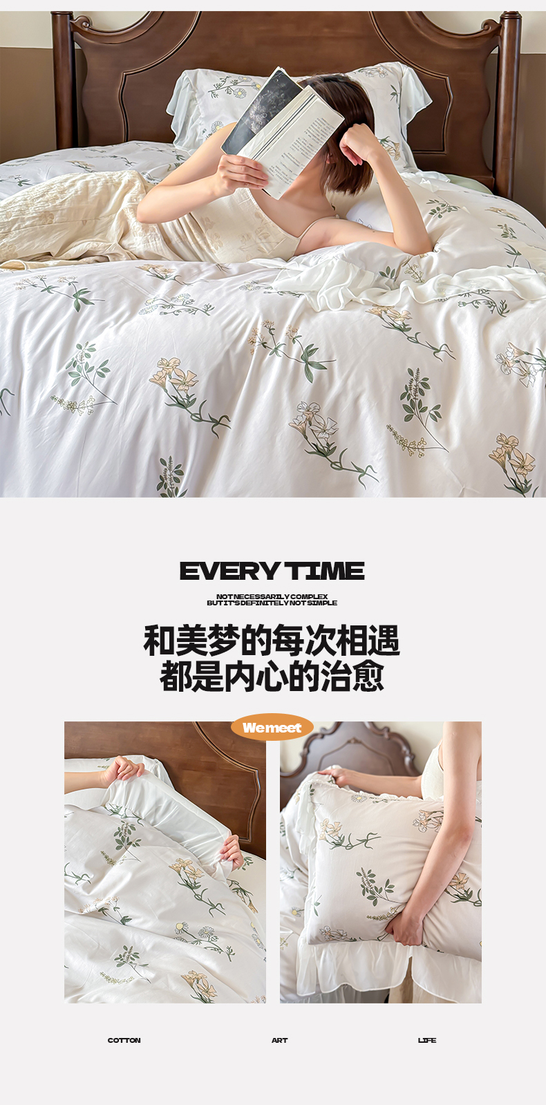 (总)窝米2022新款13370全棉四件套花卉系列,春风里,青柚,秋收,水波纹米驼,水波纹炭黑,恬谧,夏花,云溪红,云溪黄