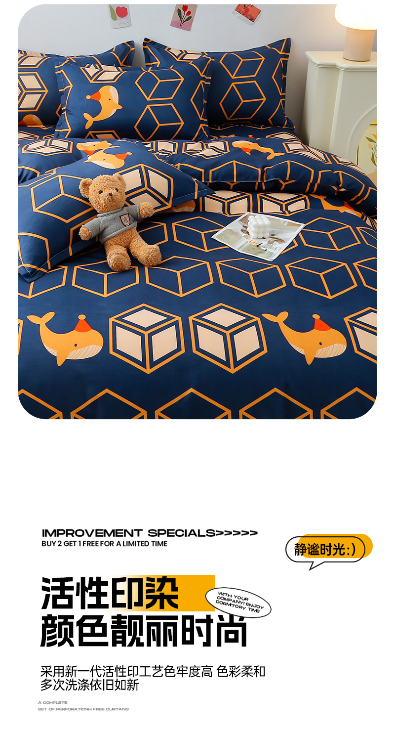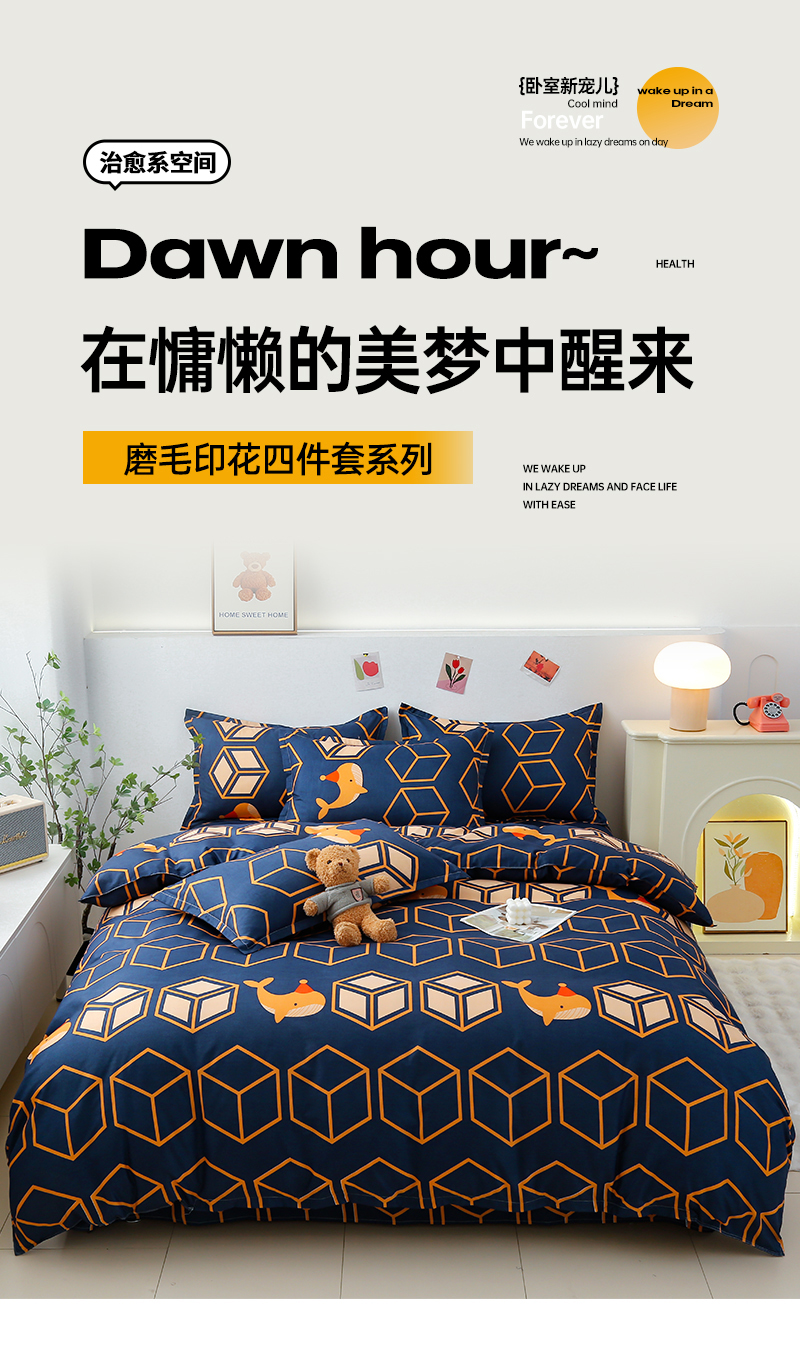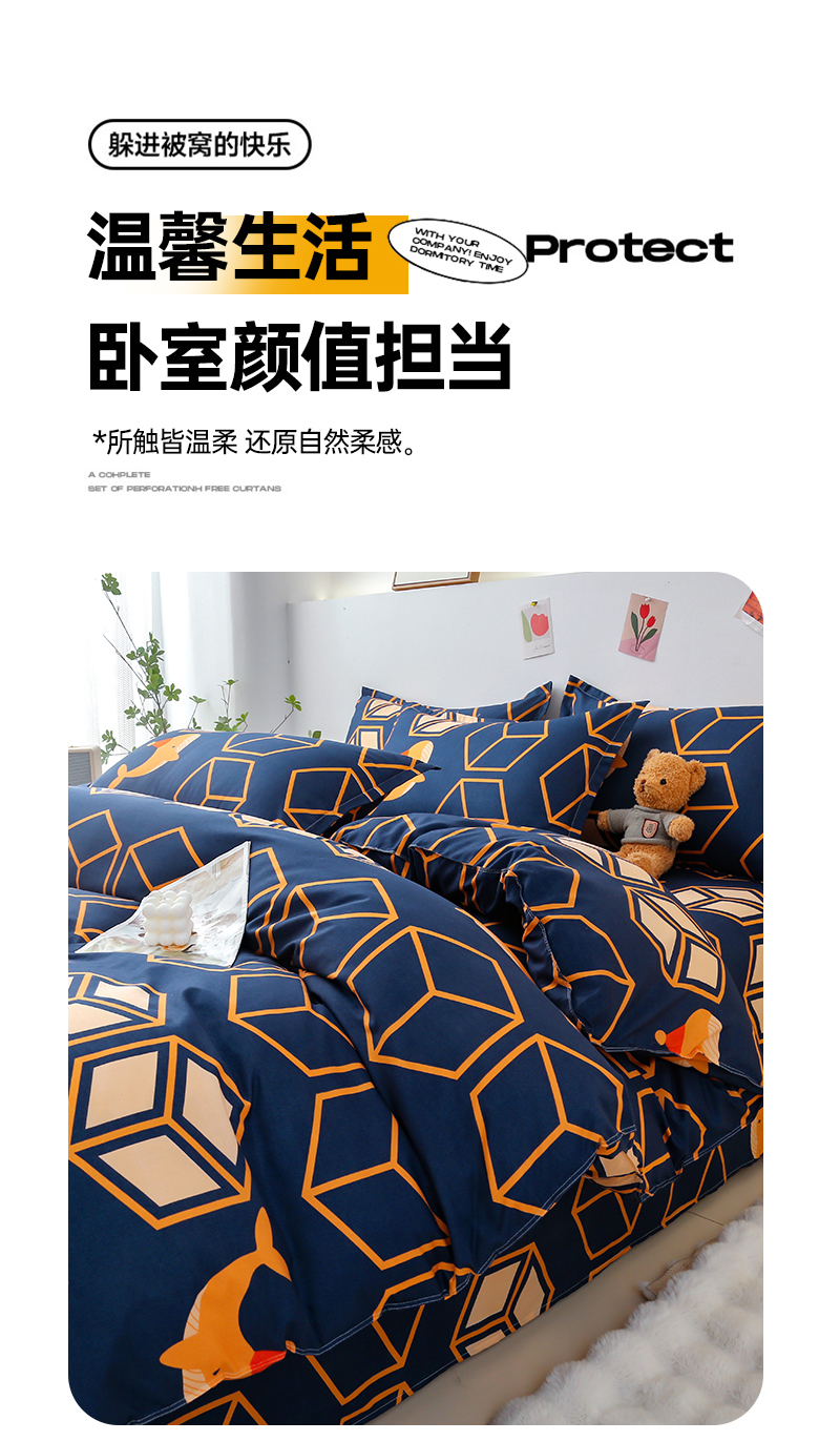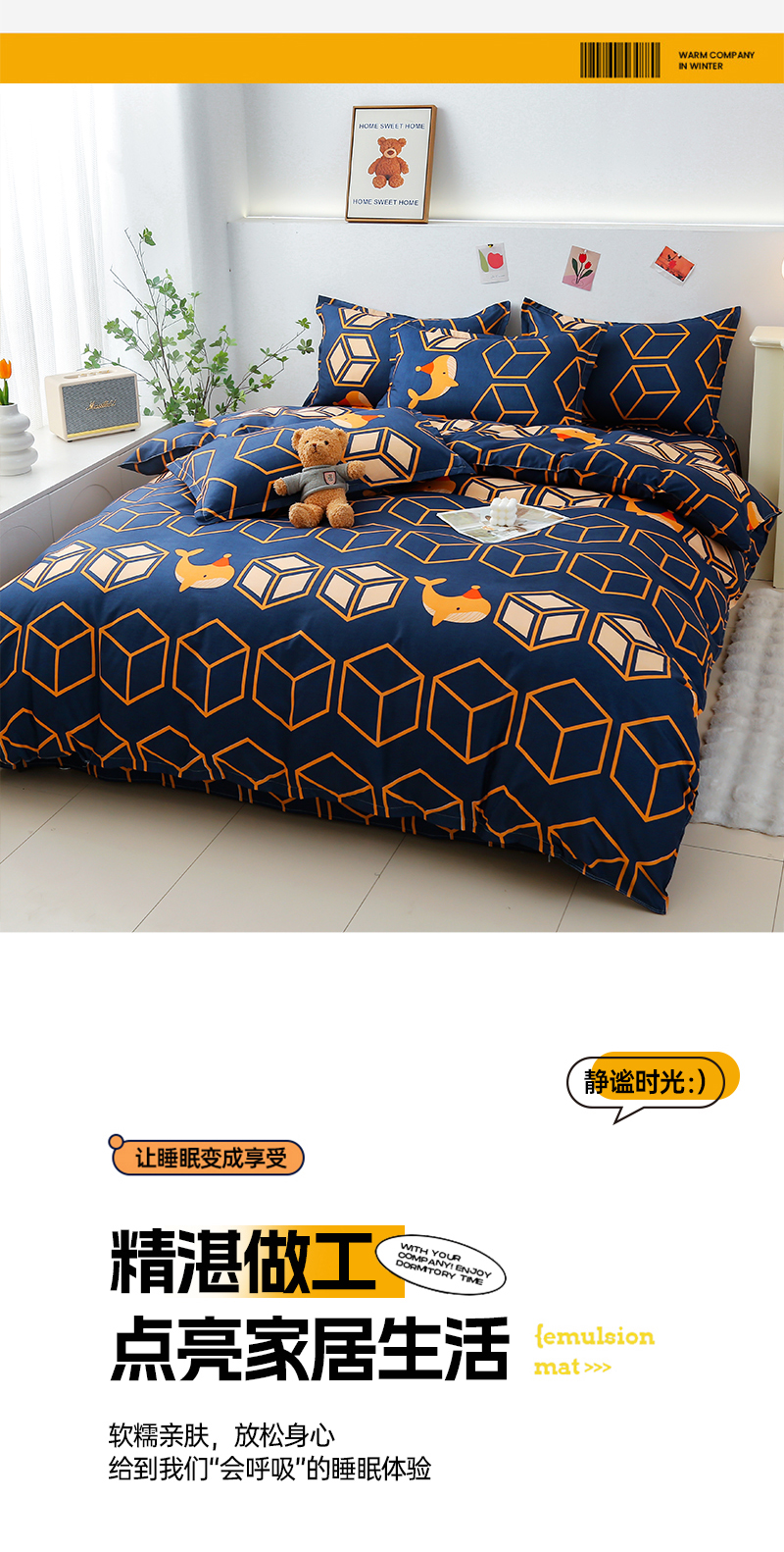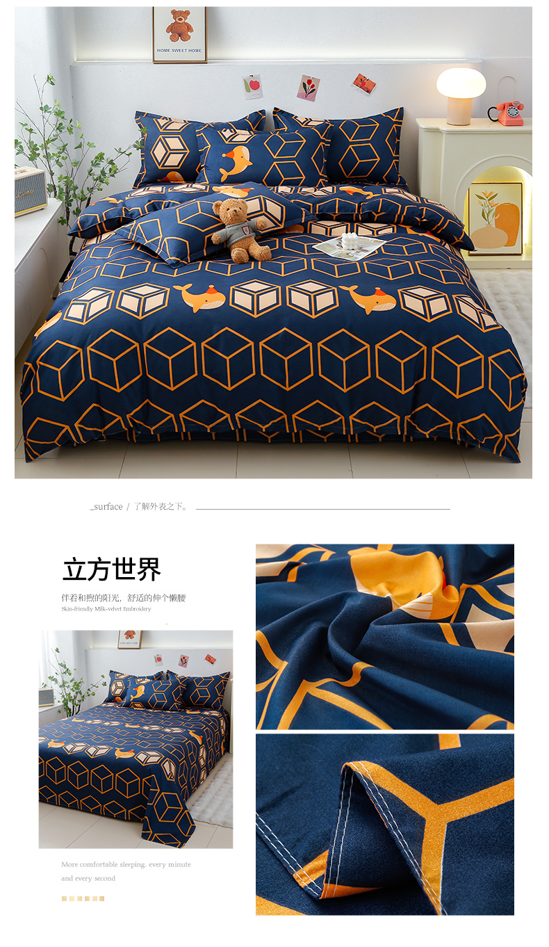 当前位置: 91家纺网 > 商品网购 > 床品套件 > 四件套 > 磨毛活性四件套 > 曼璐家纺 2025新款芦荟棉磨毛印花四件套 立方世界