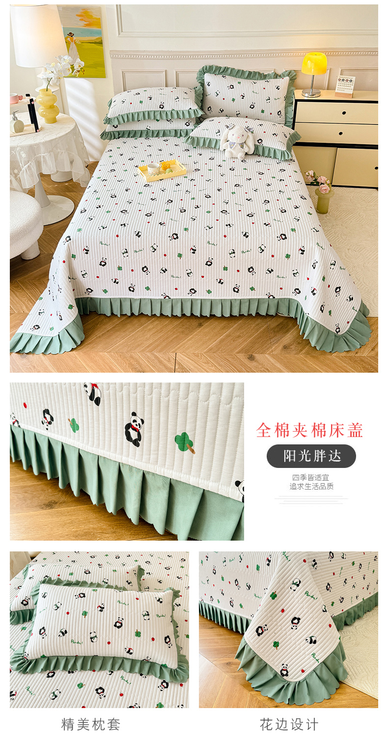 美达家纺 2025新款全棉夹棉防滑小花边床盖 阳光胖达