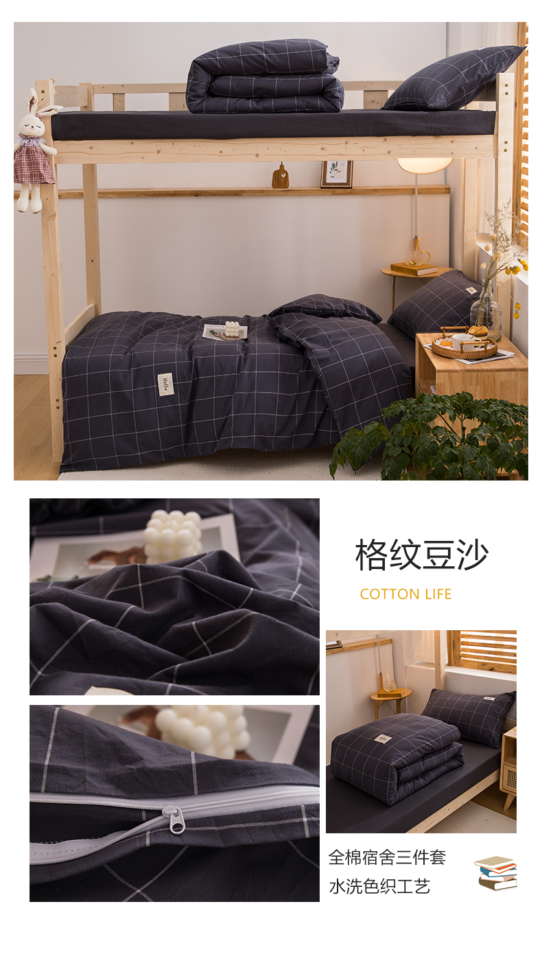 当前位置: 91家纺网 > 商品网购 > 床品套件 > 三件套 > 柠萌家居 2025新款无印良品风A类色织水洗棉全棉学生宿舍三件套床垫套三件套 格纹冷灰