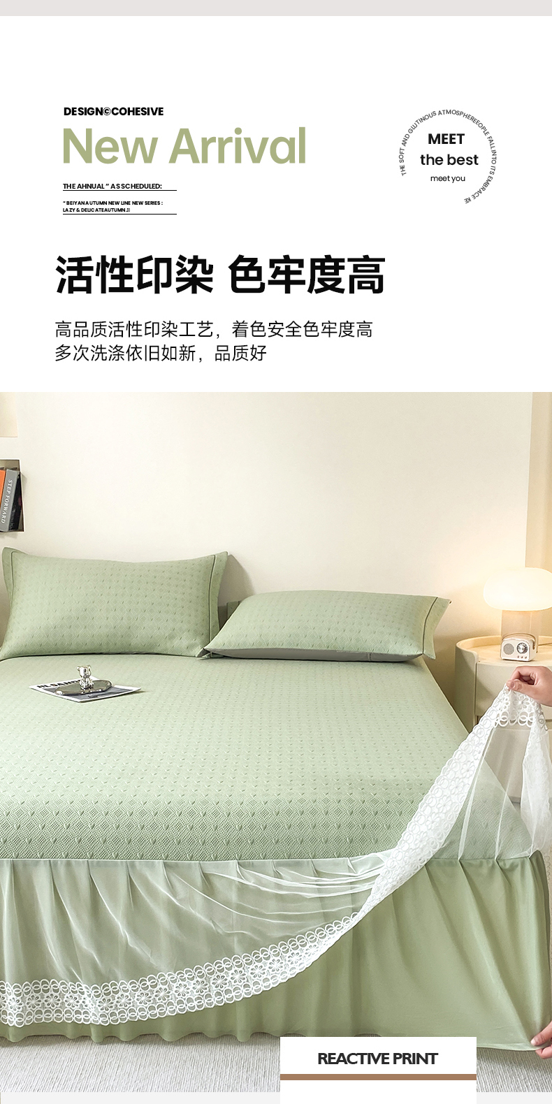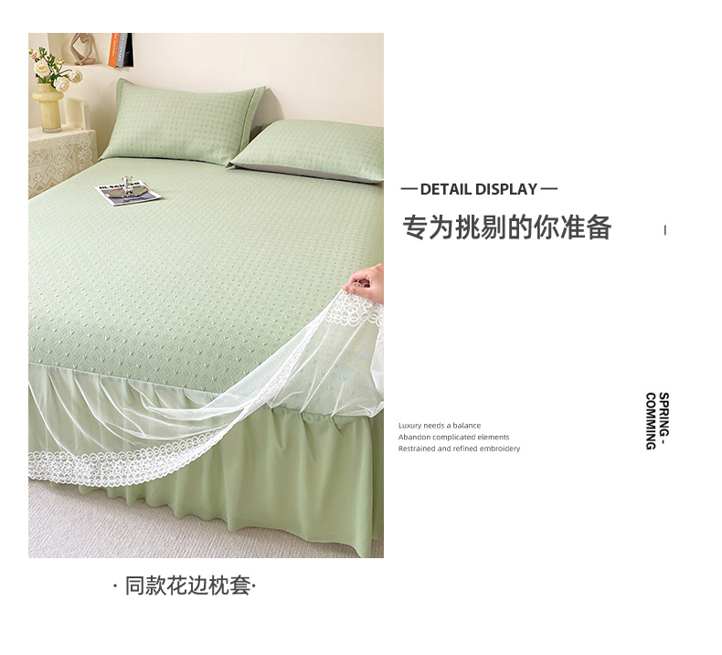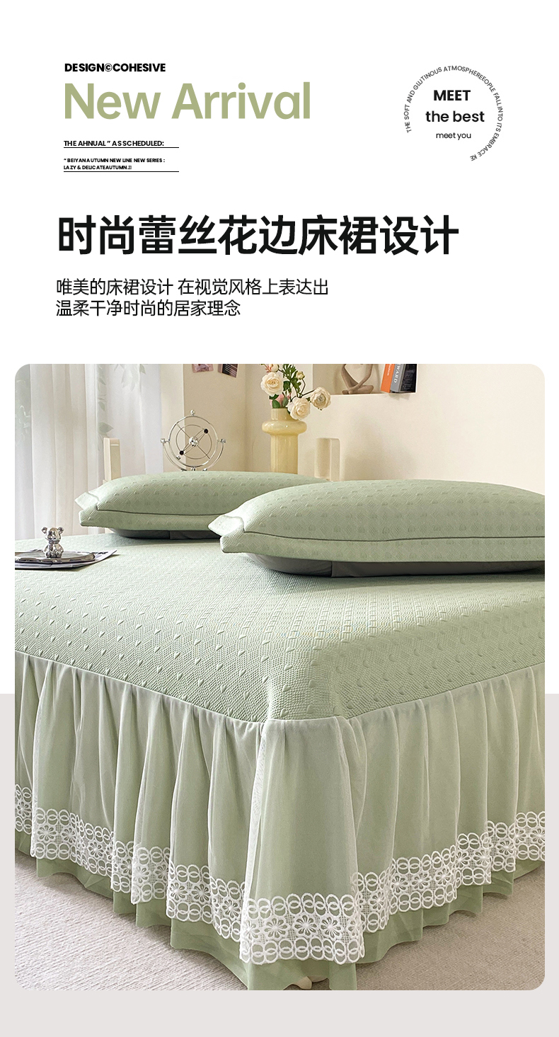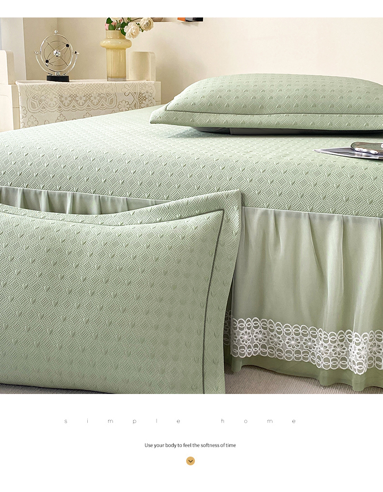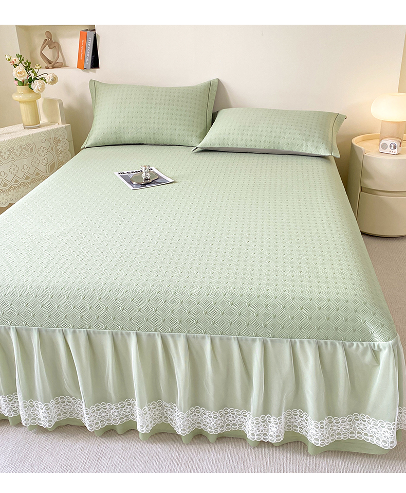 (总)美洲琳 2025新款650克凉豆豆凉席床裙三件套,湖蓝,浅灰,水绿,香槟,心粉