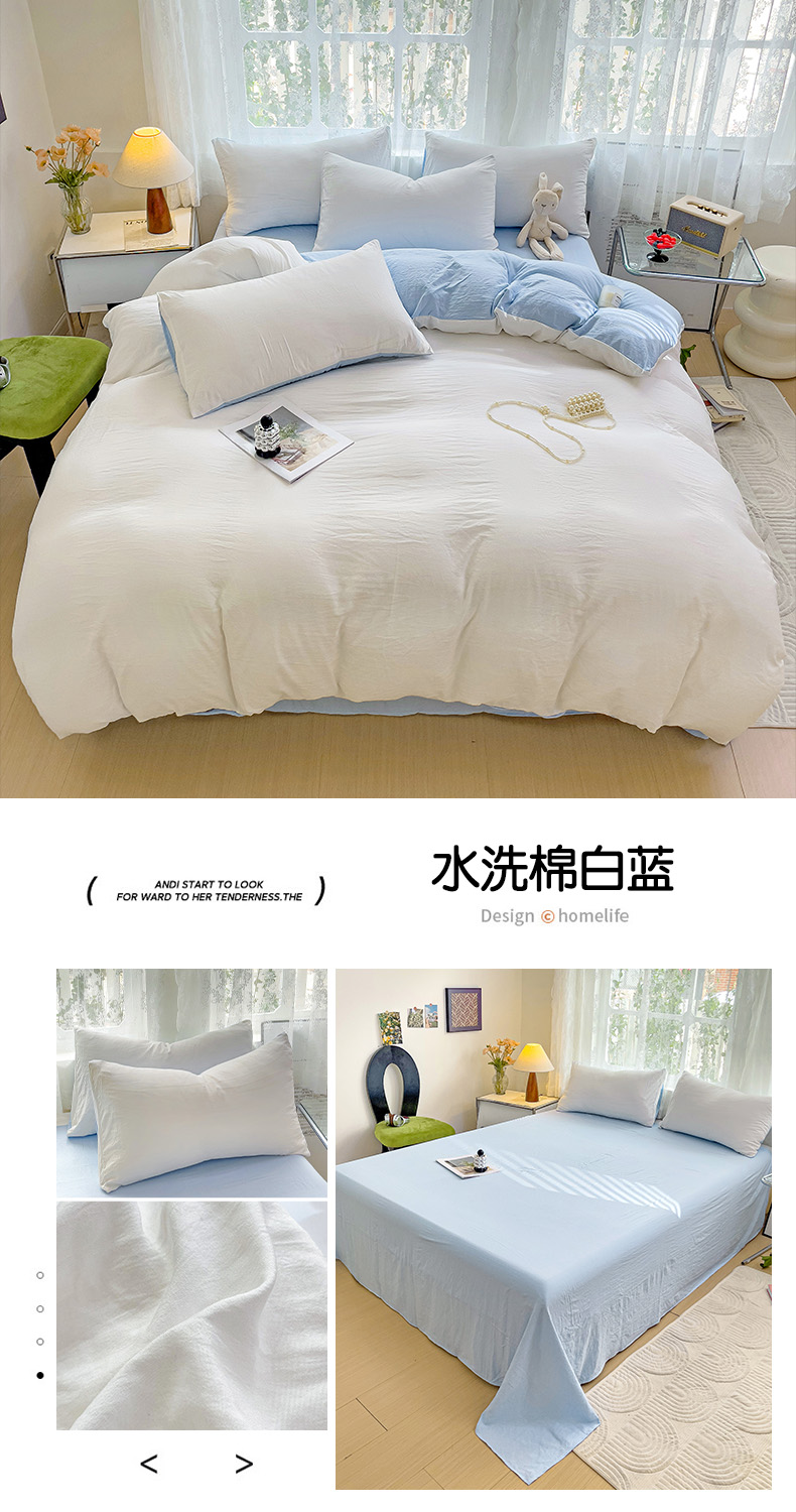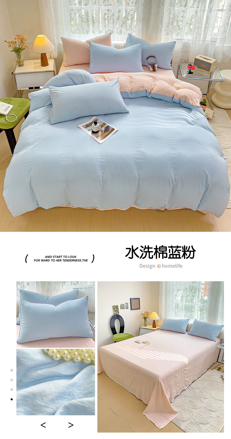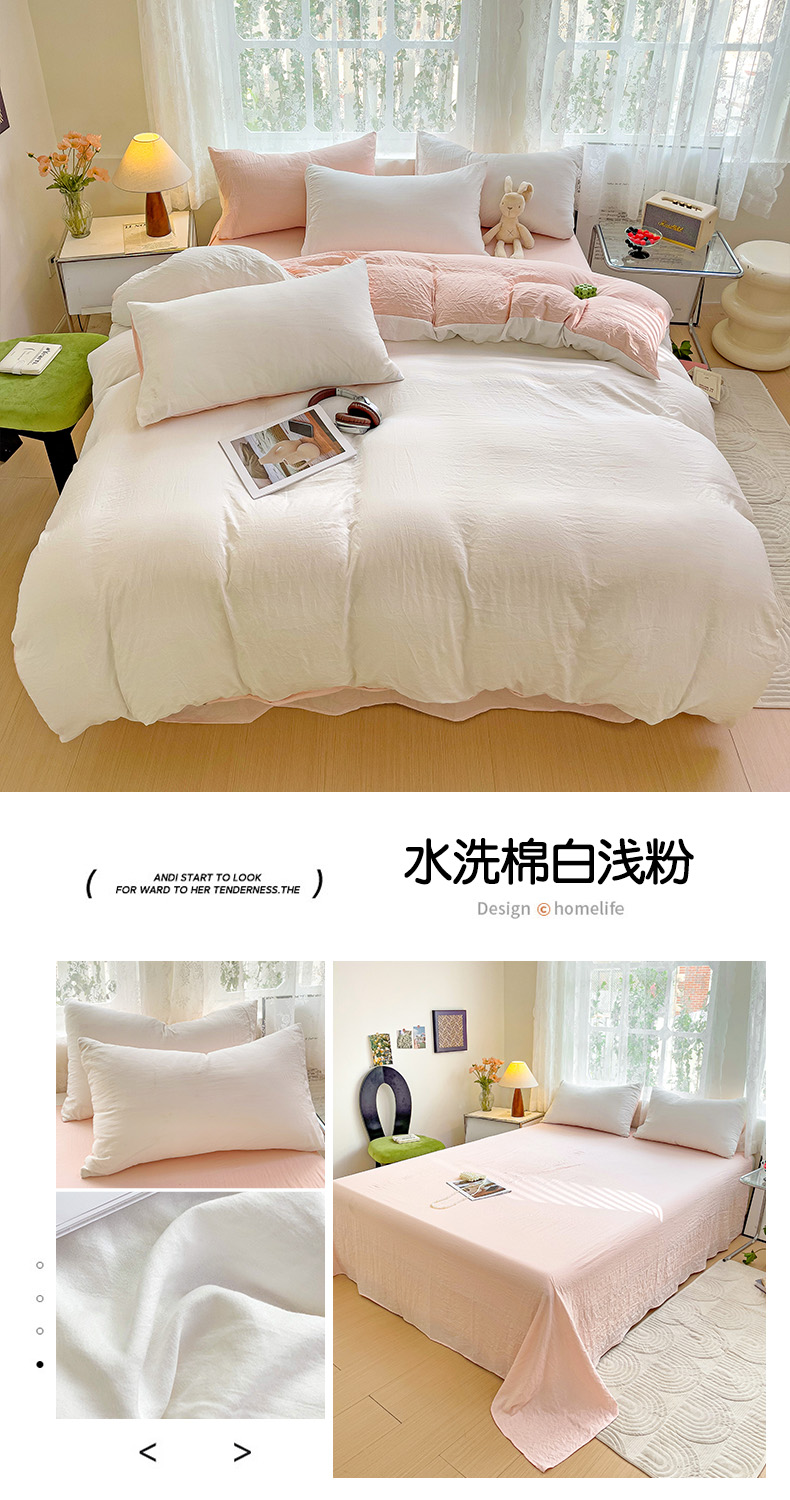 (总)韩巢家纺 2024新款ins风超柔褶皱亲肤水洗棉被套单件-纯色双拼系列(提供卖家秀)