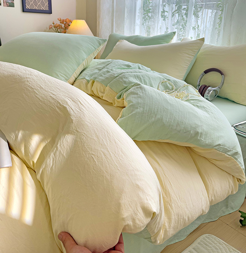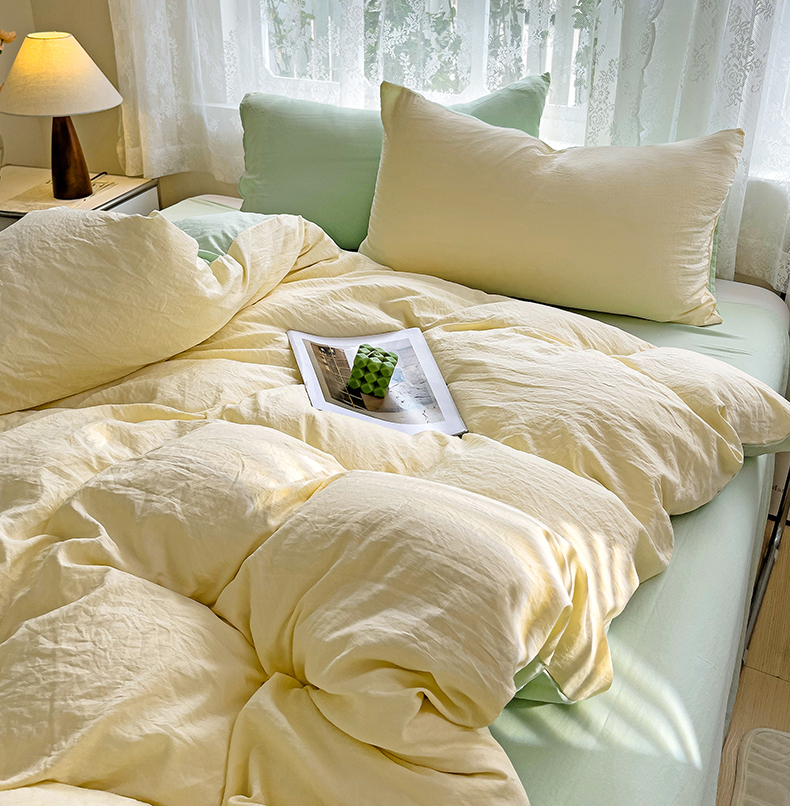 商品名称:(总)韩巢家纺 2024新款ins风超柔褶皱亲肤水洗棉被套单件-纯色双拼系列(提供卖家秀)