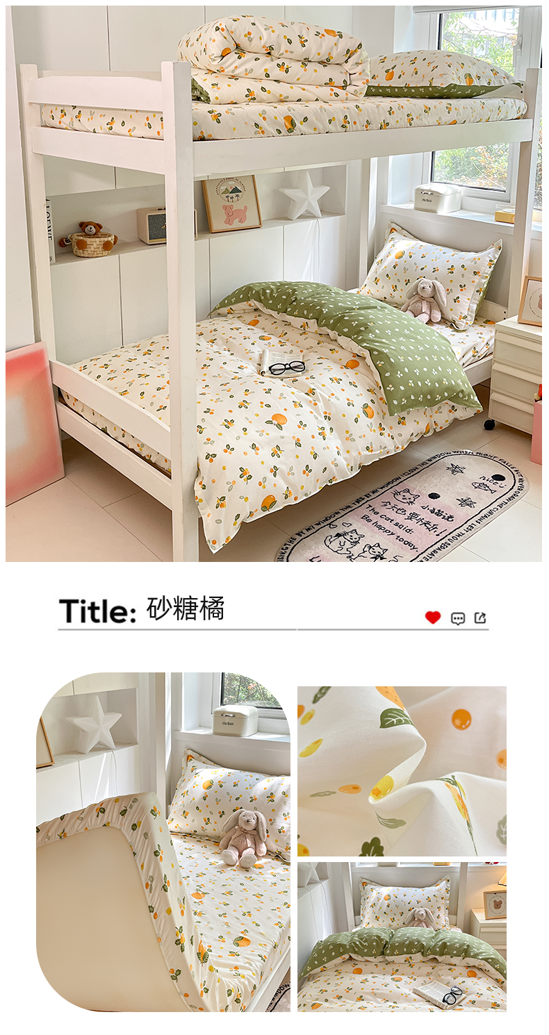 当前位置: 91家纺网 > 商品网购 > 床品套件 > 三件套 > 2024新款全棉印花三件套学生宿舍床三件套上下铺床单被套 砂糖橘
