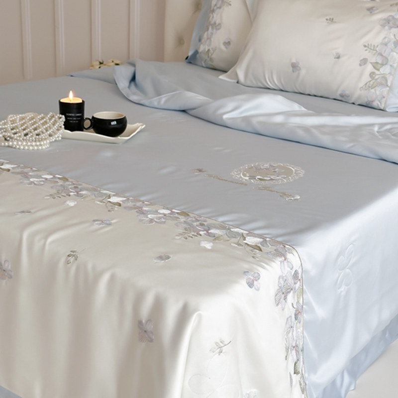 (总)佳汐蓝家纺 2025新款100支贡缎提花全棉刺绣婚庆四件套-繁花佩影,繁花佩影