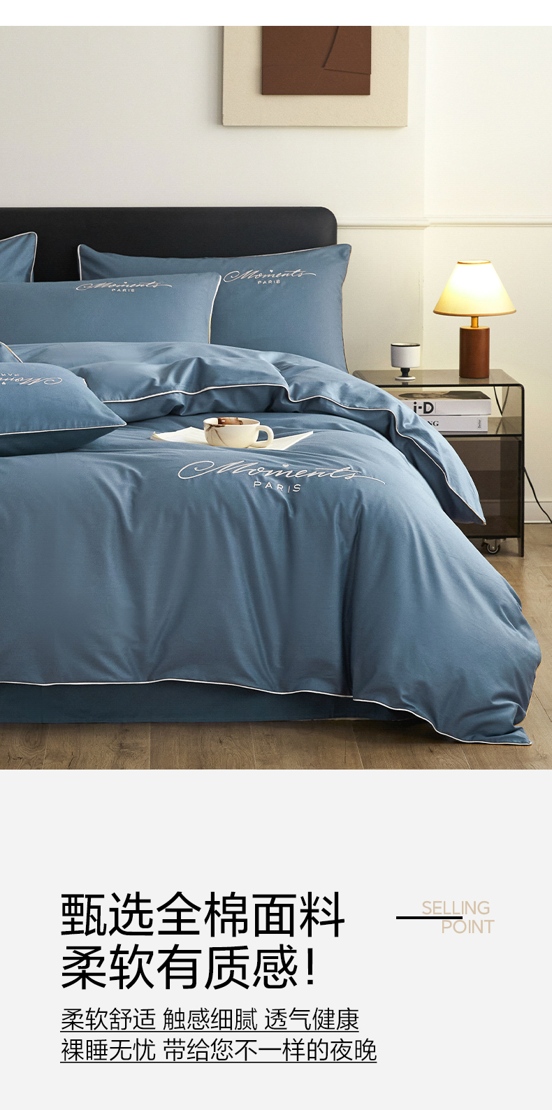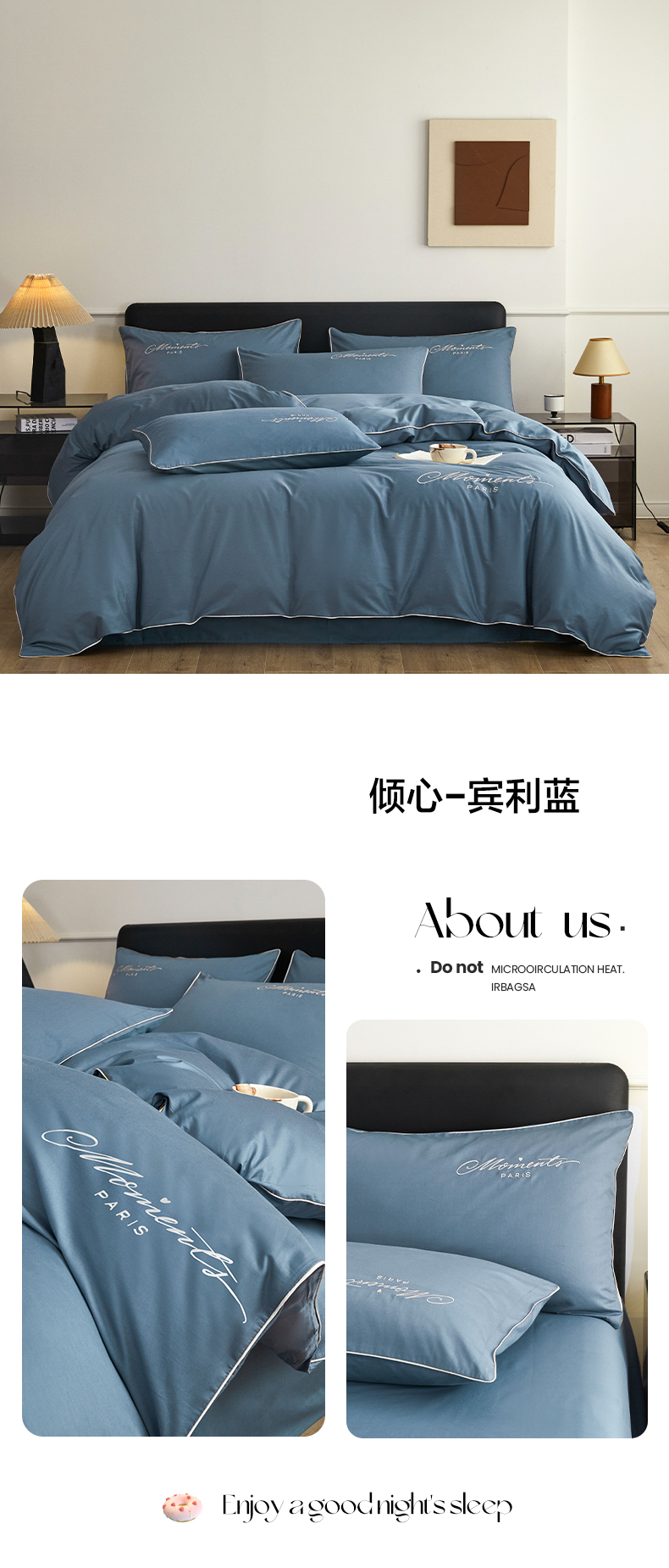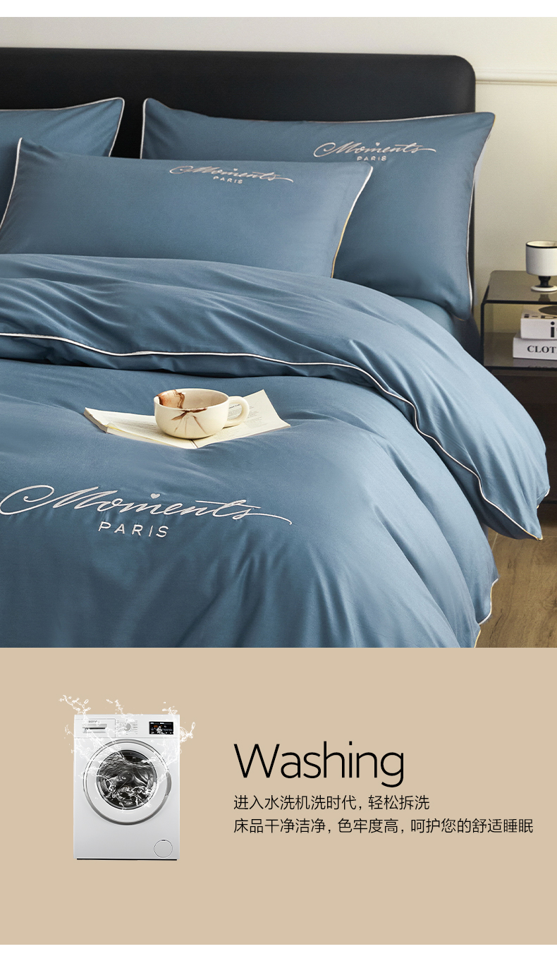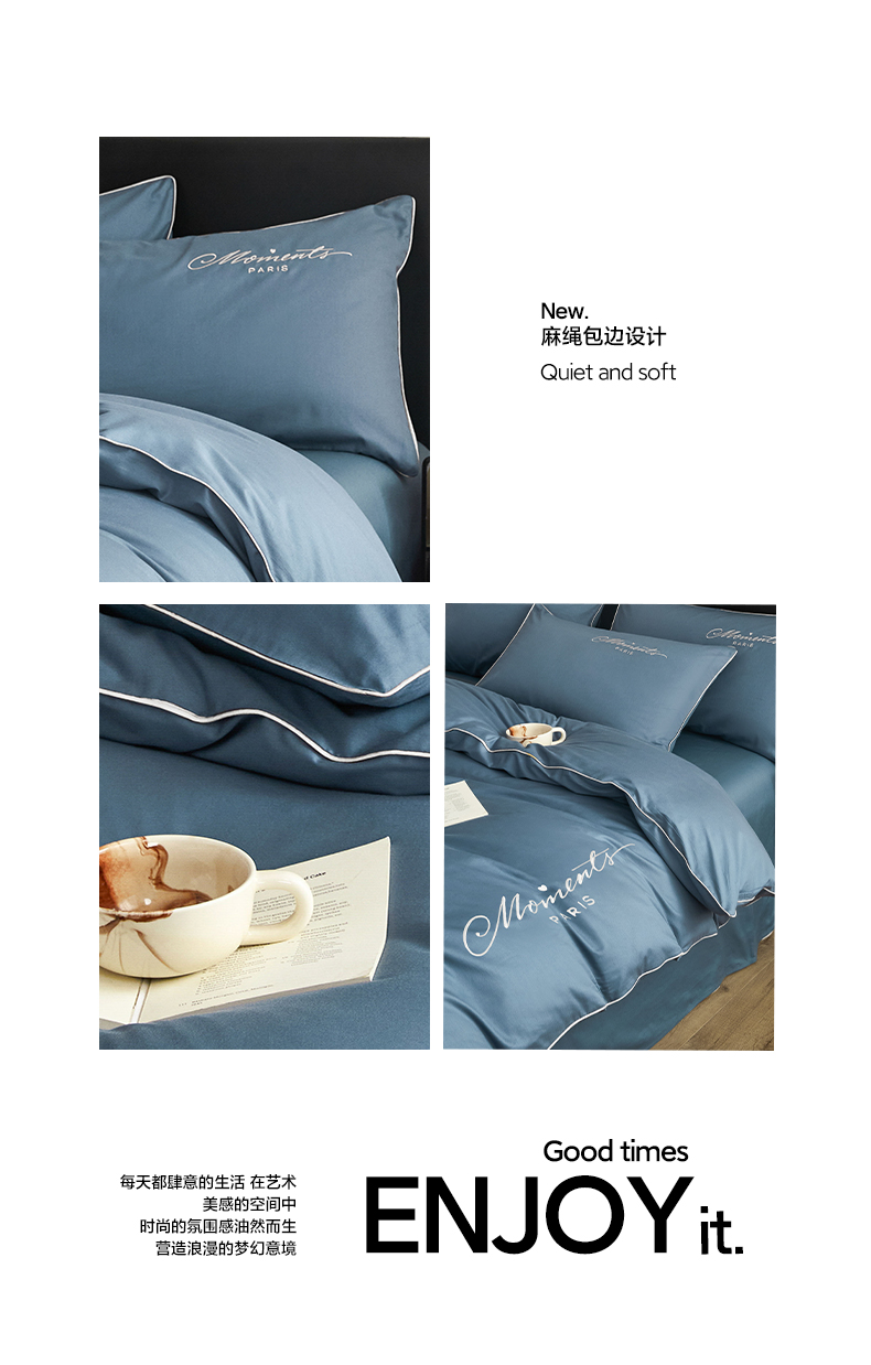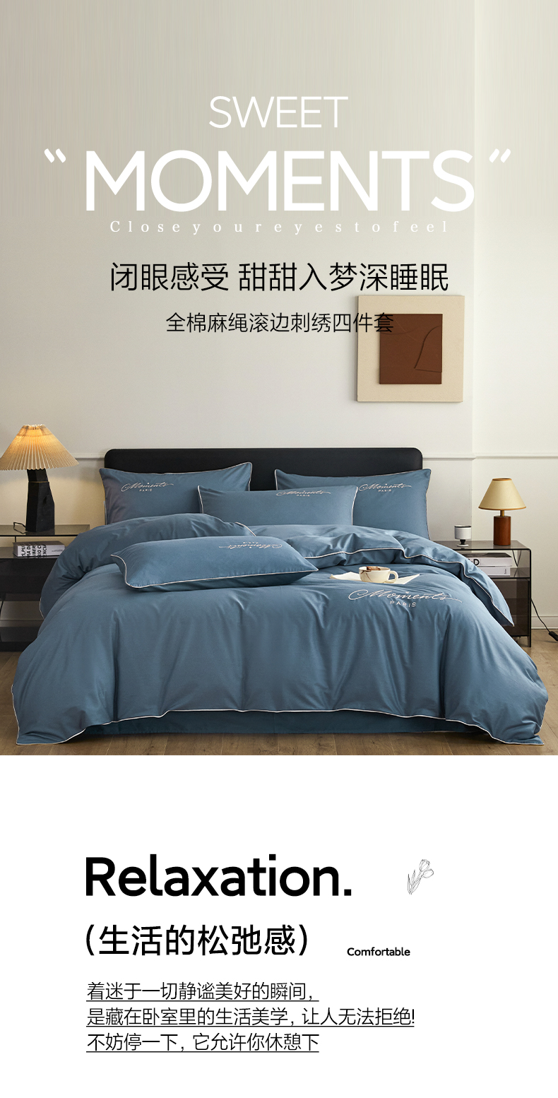 商品名称:如一2024新款全棉麻绳四件套学生三件套宿舍套件-倾心系列 倾心-宾利蓝