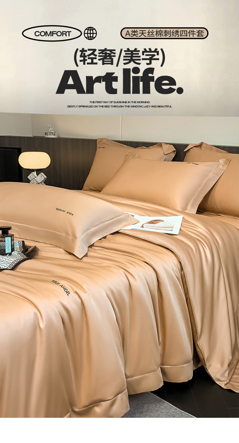 罗优家纺 2025新款超细旦天丝+棉四件套(高档礼盒包装) 栗棕色