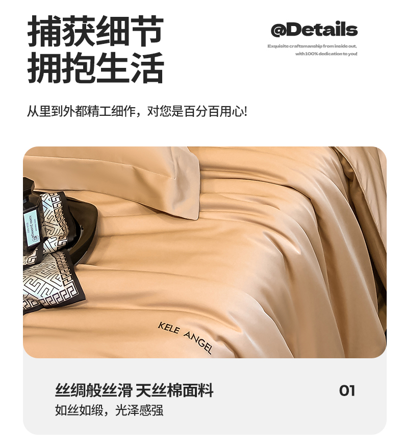 商品名称:罗优家纺 2025新款超细旦天丝+棉四件套(高档礼盒包装) 栗棕色