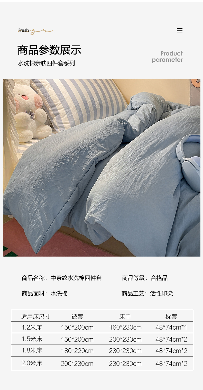 商品名称:(总)悦织湾家纺 2025新款水洗棉纯色条纹小眼睛学生宿舍三件套