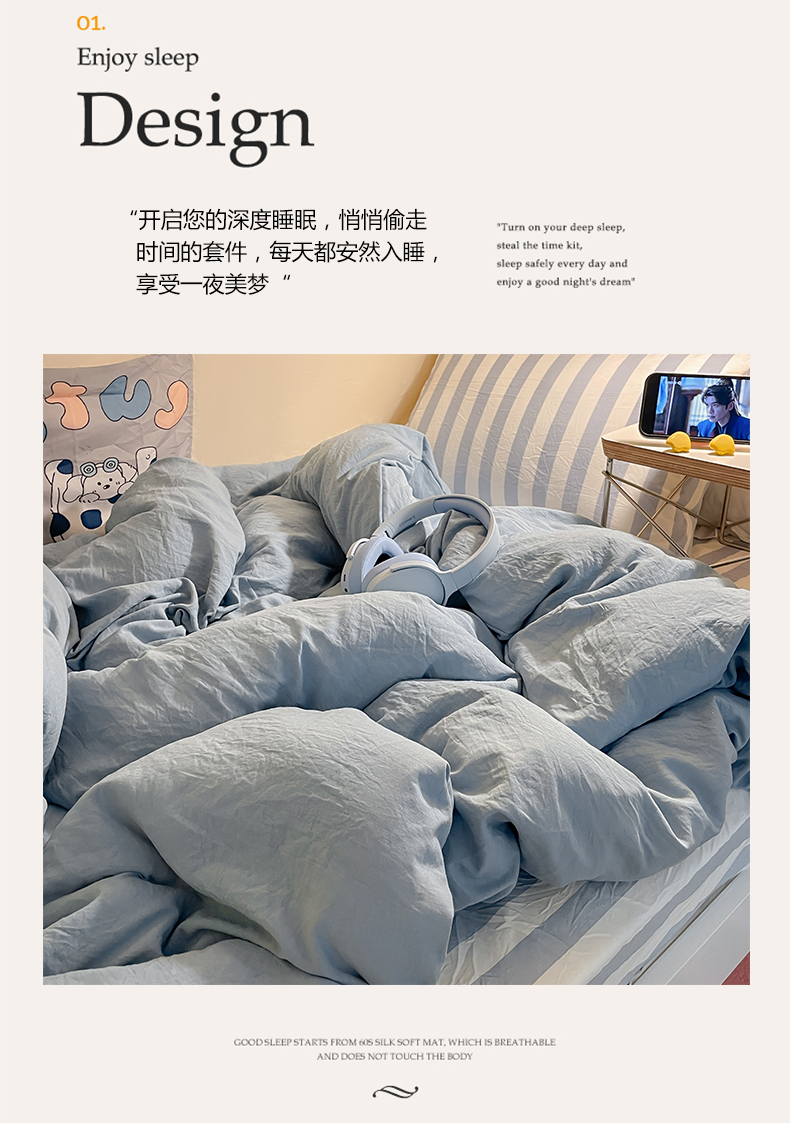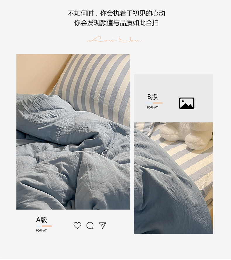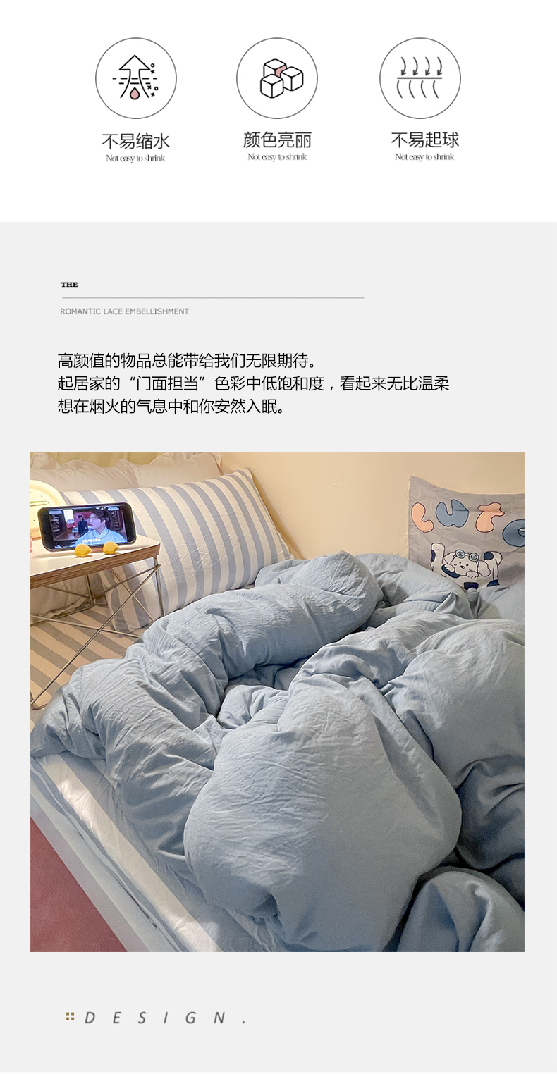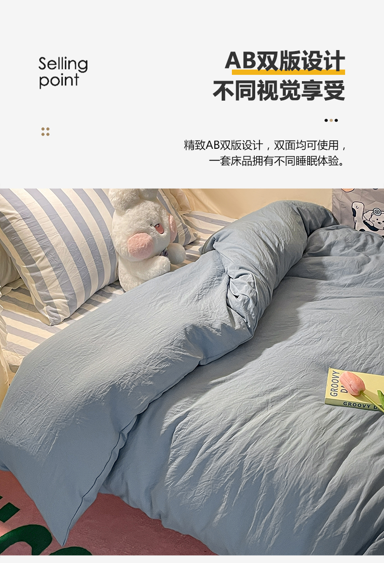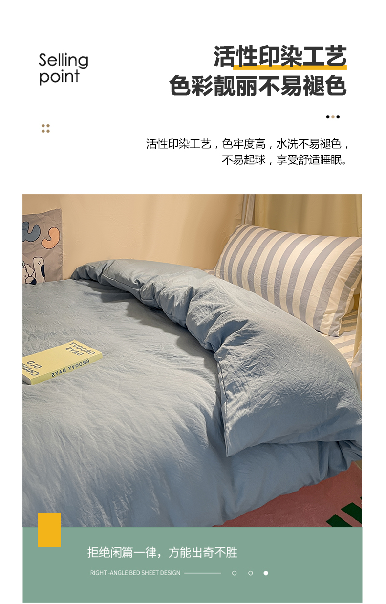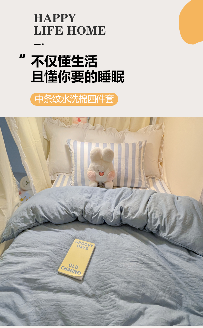(总)悦织湾家纺 2025新款水洗棉纯色条纹小眼睛学生宿舍三件套