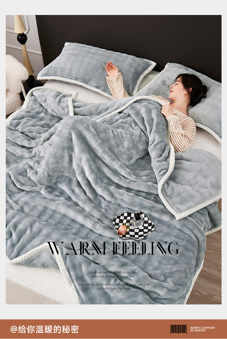 (总)坦客毯业 2025新款泡泡绒仿兔毛绒四件套牛奶绒4件套8斤重加厚高密保暖,琉璃蓝,绅士灰,珍珠白
