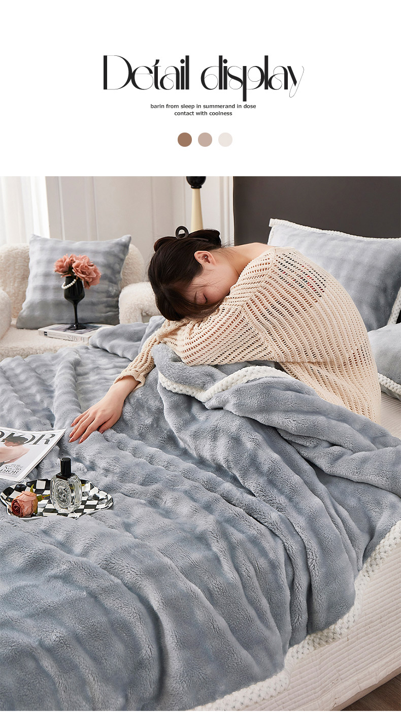 (总)坦客毯业 2025新款轻奢纯色托斯卡纳兔毛绒大泡泡绒毛毯双面都是兔毛高密高克重可供跨境外贸出口,托斯-淡雅蓝,托斯-高雅棕色,托斯-奶油白,托斯-清新玉粉,托斯-韵味灰,组合图仅展示
