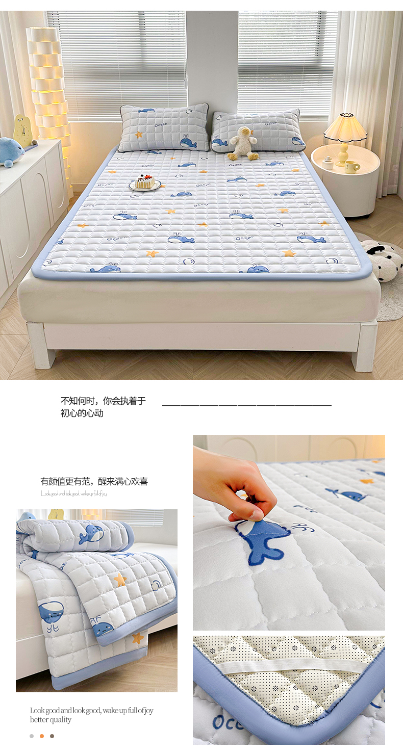 商品名称:花言狐语 2025新款水洗棉加厚夹棉防滑床褥子(印花系列)-大床 小海豚
