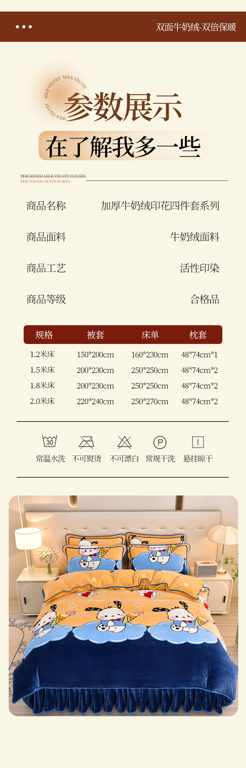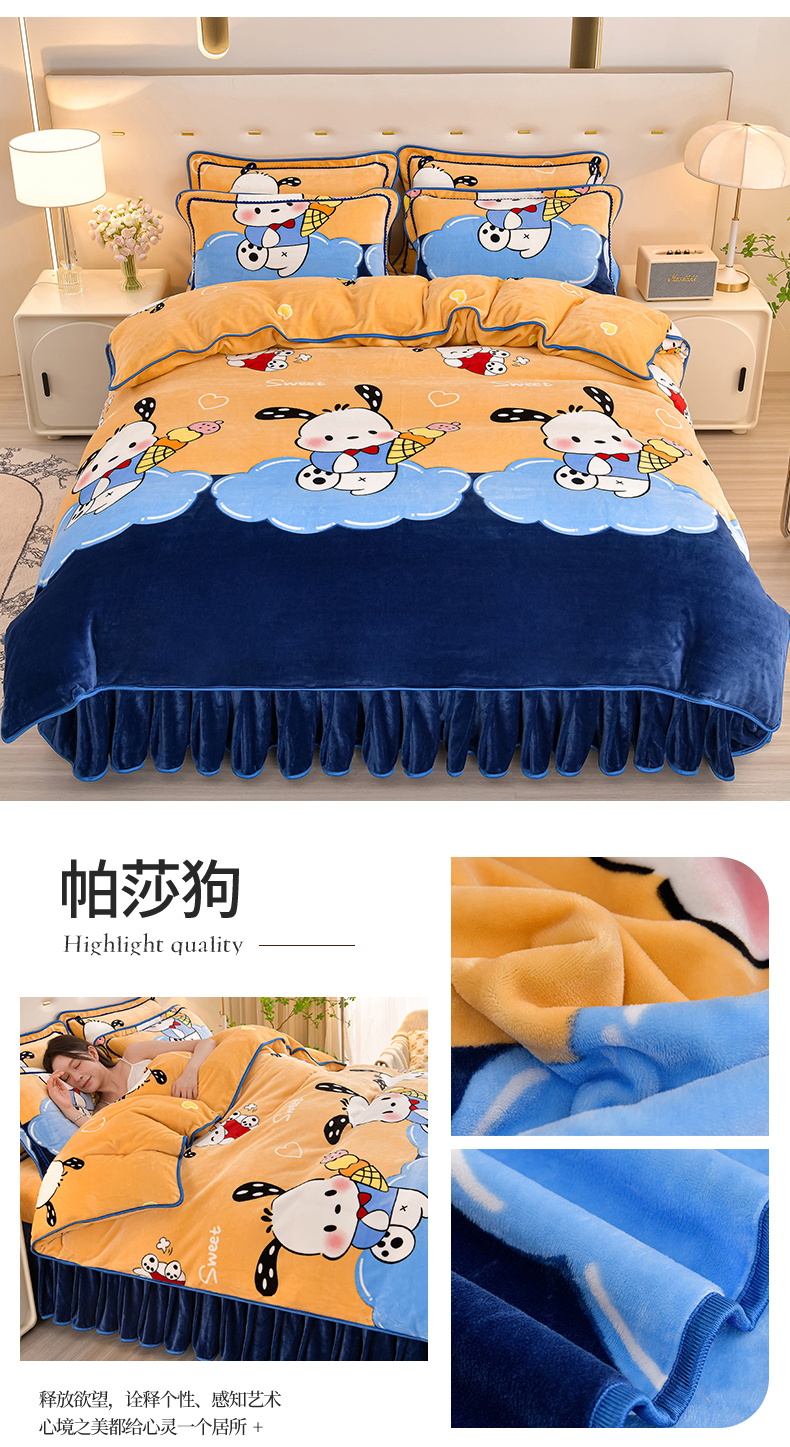 商品名称:雨洋2025新款加厚保暖8.5斤牛奶绒金貂婴儿绒四件套 帕莎狗