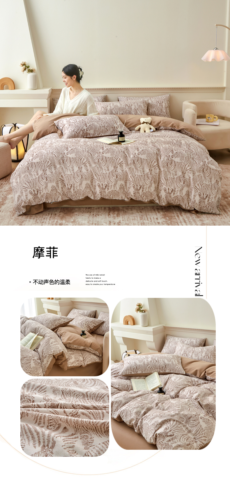 商品名称:柠馨 2024新款基础款全棉磨毛纯色四件套 摩菲