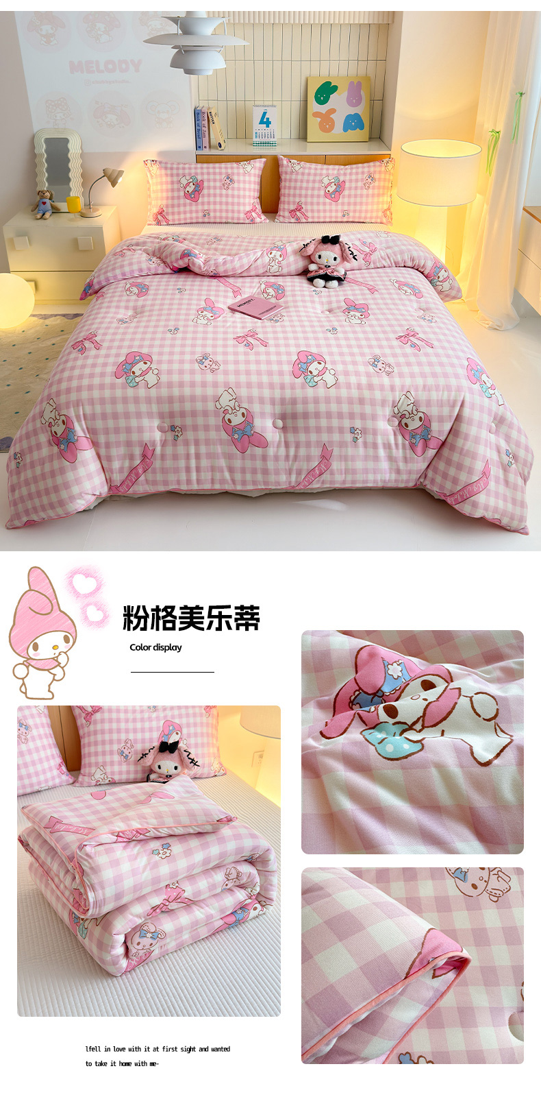 (总)木堇家居 2025春夏三丽鸥云柔棉毛巾绣夏被四件套,毛巾绣-粉色美乐蒂,毛巾绣-粉色kt猫,毛巾绣-蓝色帕恰狗,毛巾绣-小马大耳狗,毛巾绣-紫色库洛米