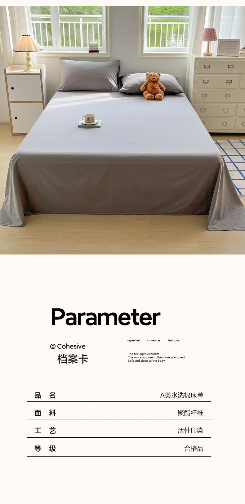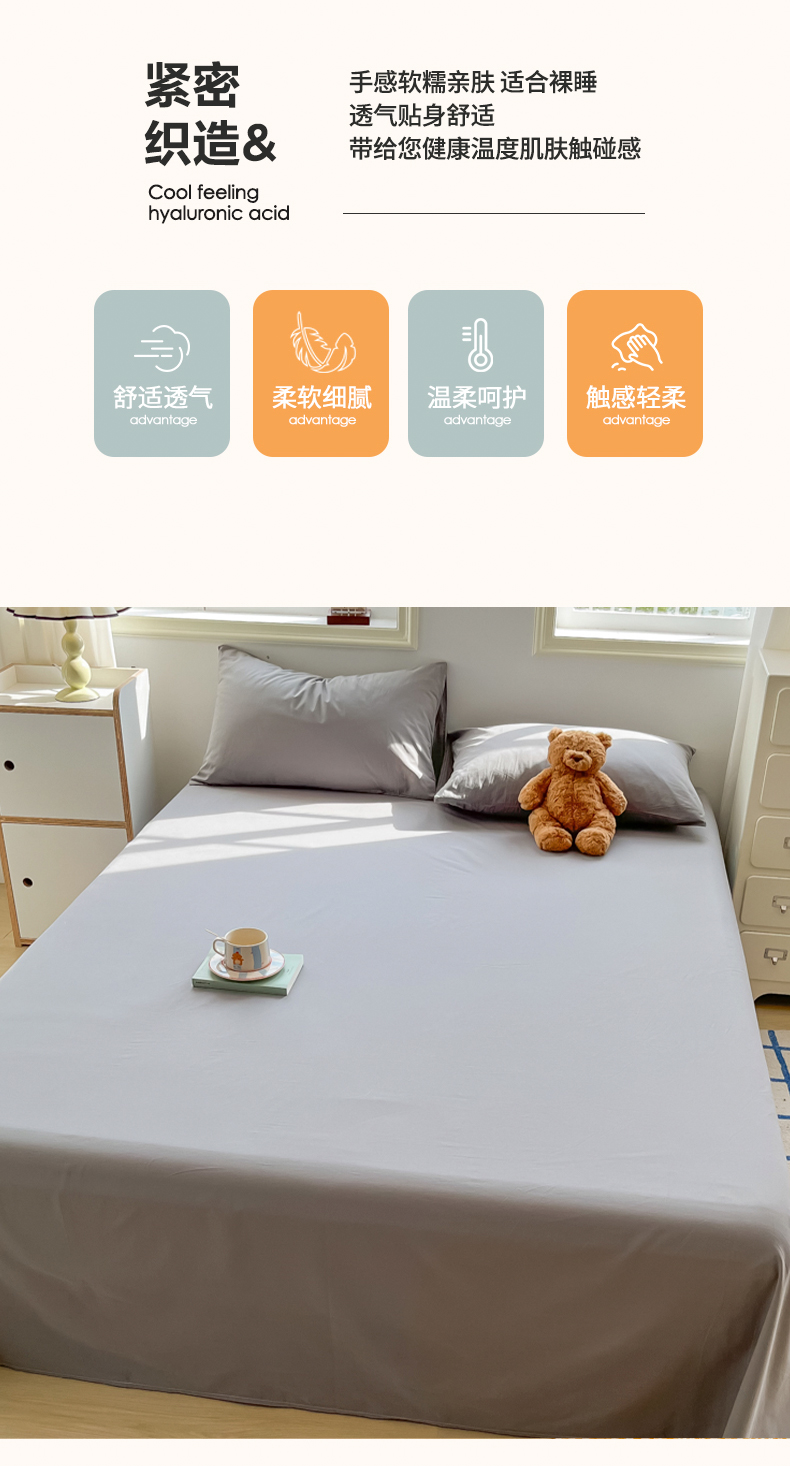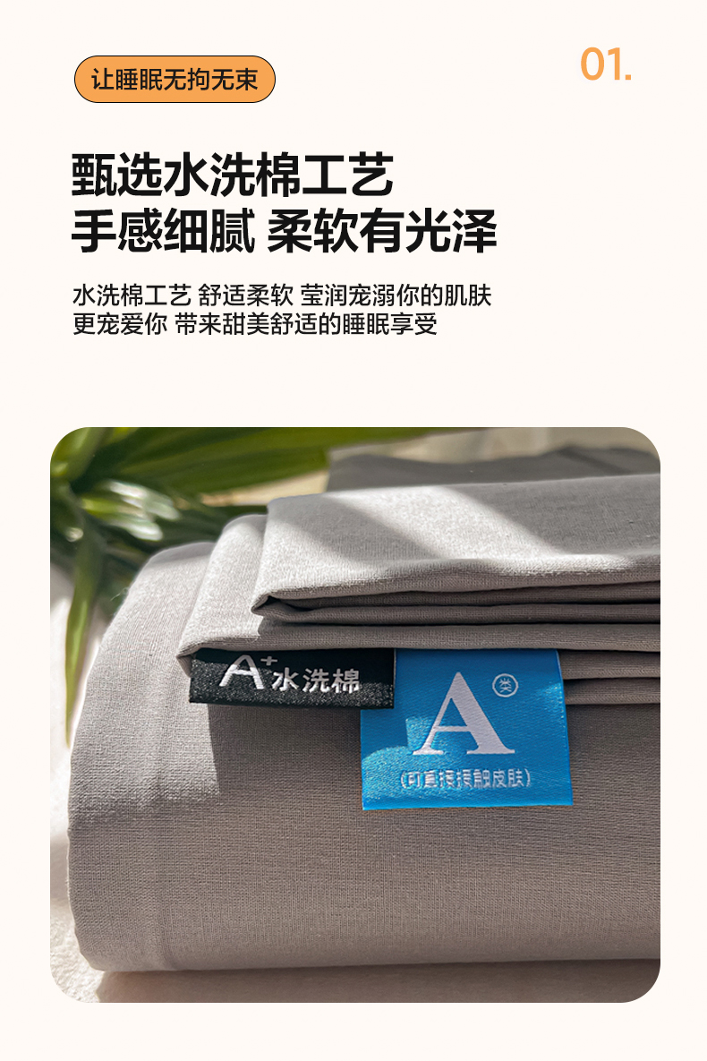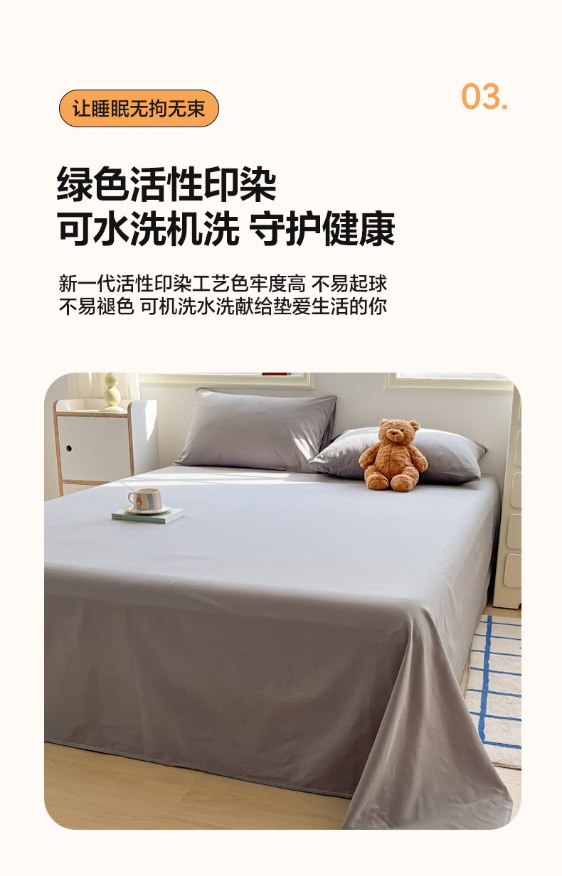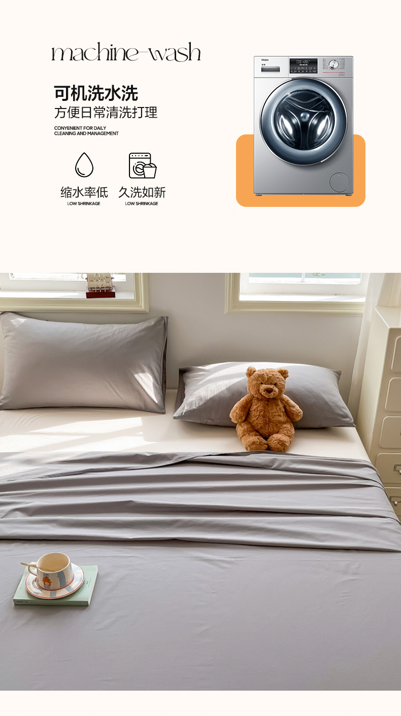 商品名称:韩巢家纺 2024新款简约格子纯色A类水洗棉床单枕套三件套 A类浅灰-床单