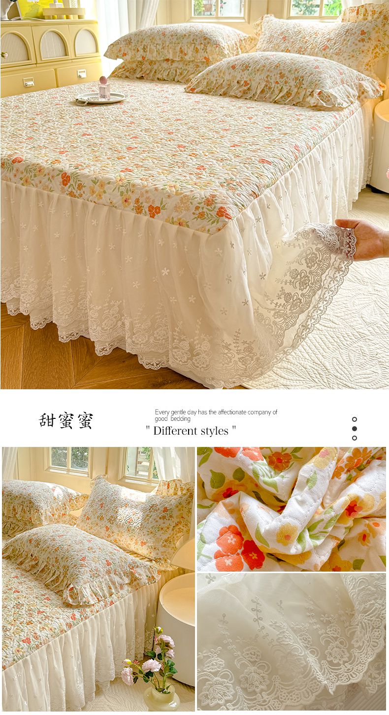 当前位置: 91家纺网 > 商品网购 > 床品套件 > 四件套 > 全棉普通四件套 > 2024新款全棉夹棉绗缝床裙三件套纯棉印花法式四件套套件蕾丝公主风 甜蜜蜜