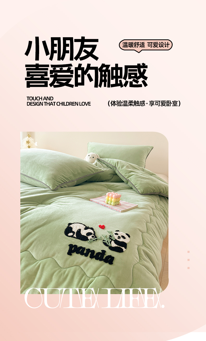 (总)网客家纺 2025新款羊毛绒牛奶绒夹棉床盖四件套,豹点-深灰,简格-黑色,简格-咖色,空间-红色,泥点-灰色,泥点-咖色,维奥-灰色,斜格-灰色,斜格-墨绿