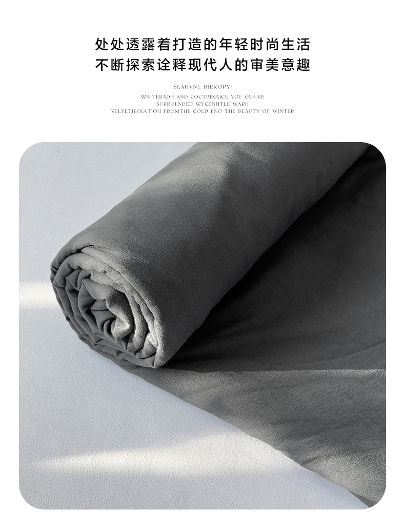 优选良品 2025新款韩版轻奢皱皱纱水洗棉拼色床单床笠四件套三件套-月光灰,月光灰