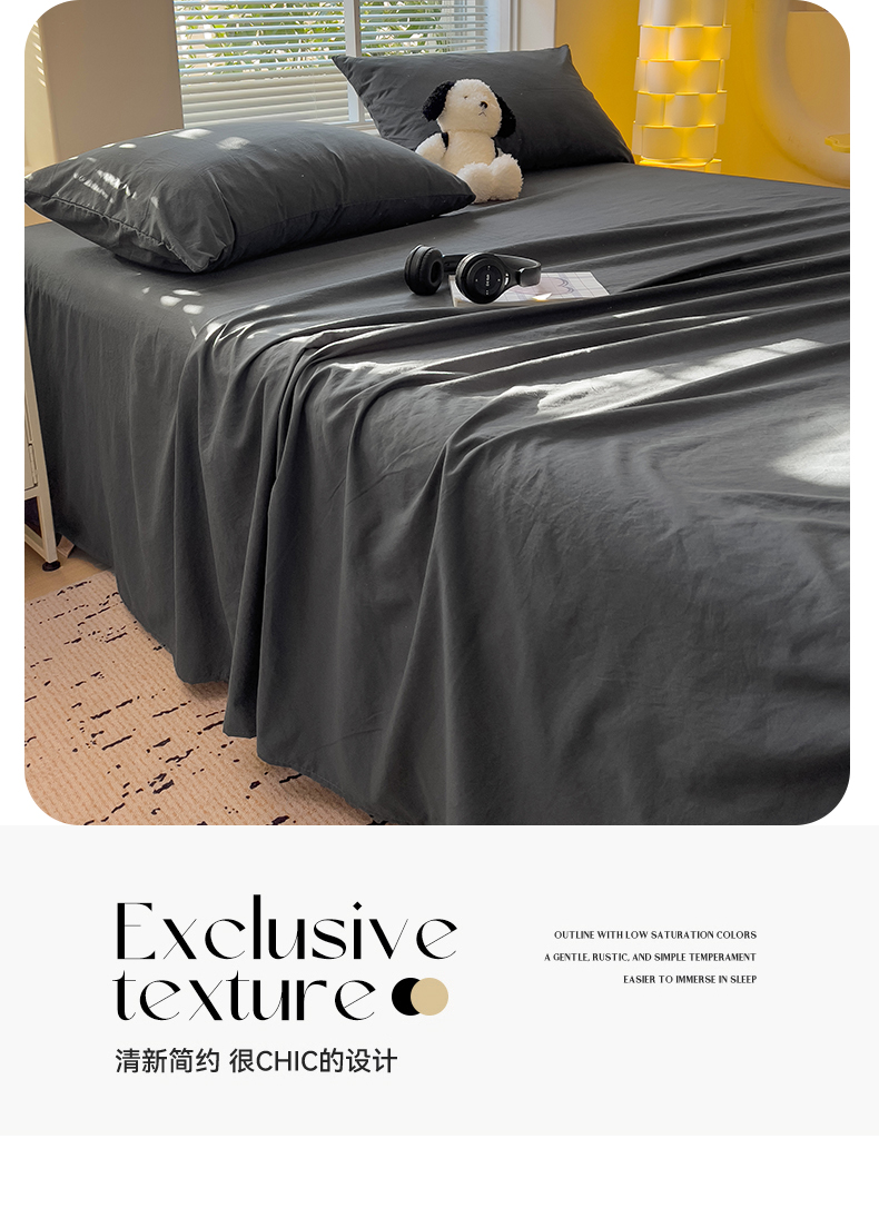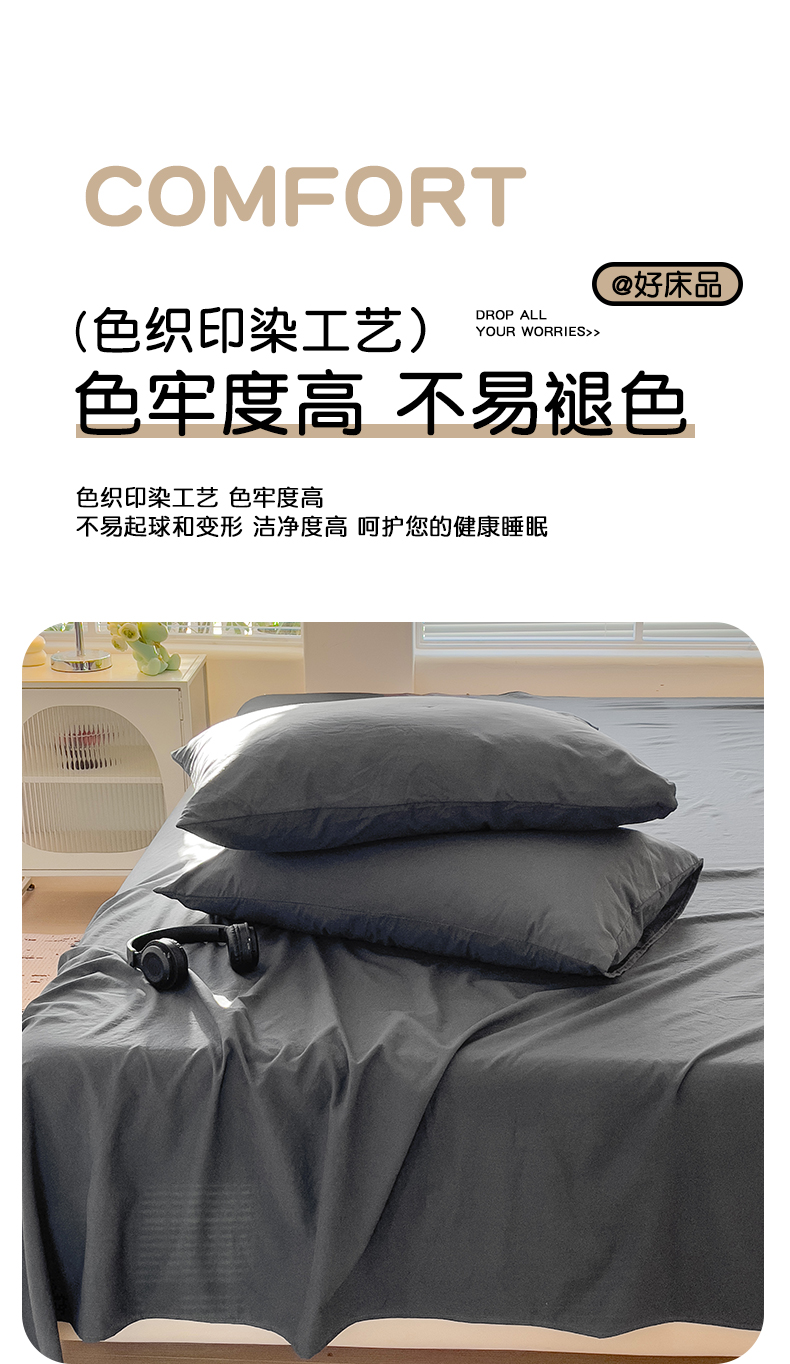 商品名称:优选良品 2025新款母婴级水洗棉床单三件套 水洗棉-深灰