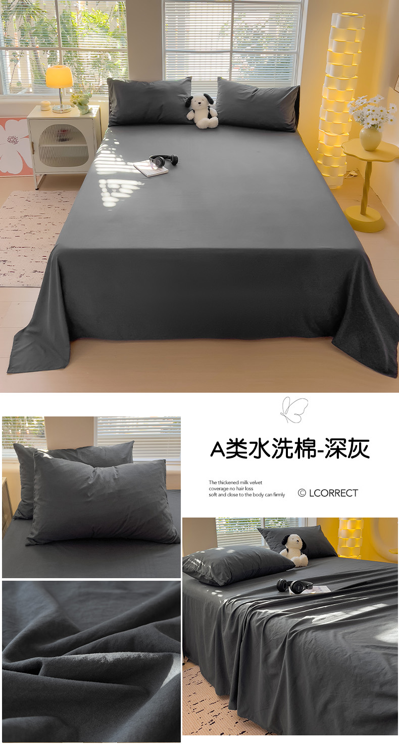 优选良品 2025新款母婴级水洗棉床单三件套 水洗棉-深灰