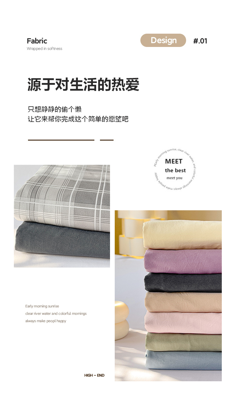 优选良品 2025新款韩版轻奢皱皱纱水洗棉拼色床单床笠四件套三件套-芋泥紫,芋泥紫
