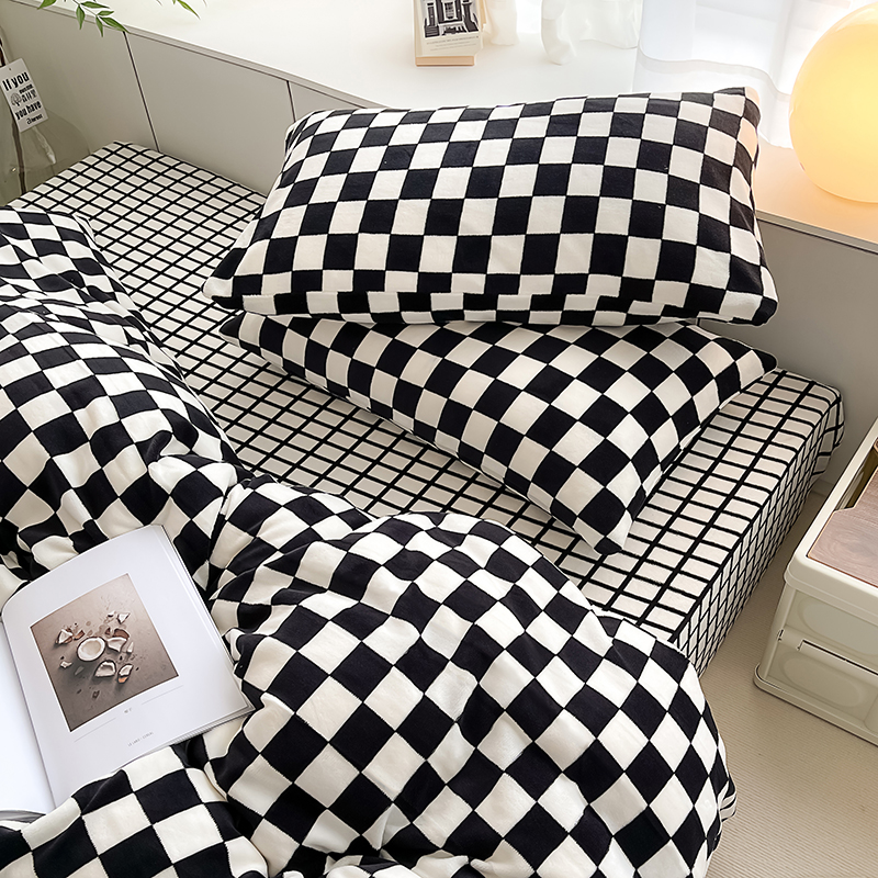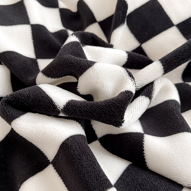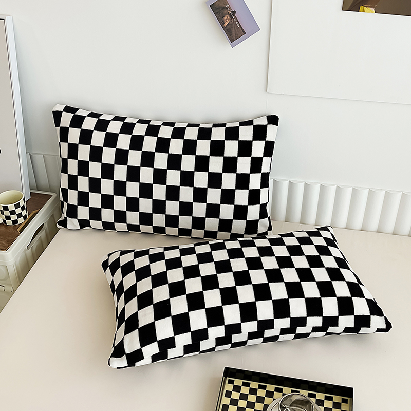 商品名称:丽涵家纺 2024秋冬新品牛奶绒印花千鸟格单品枕套 棋盘格黑