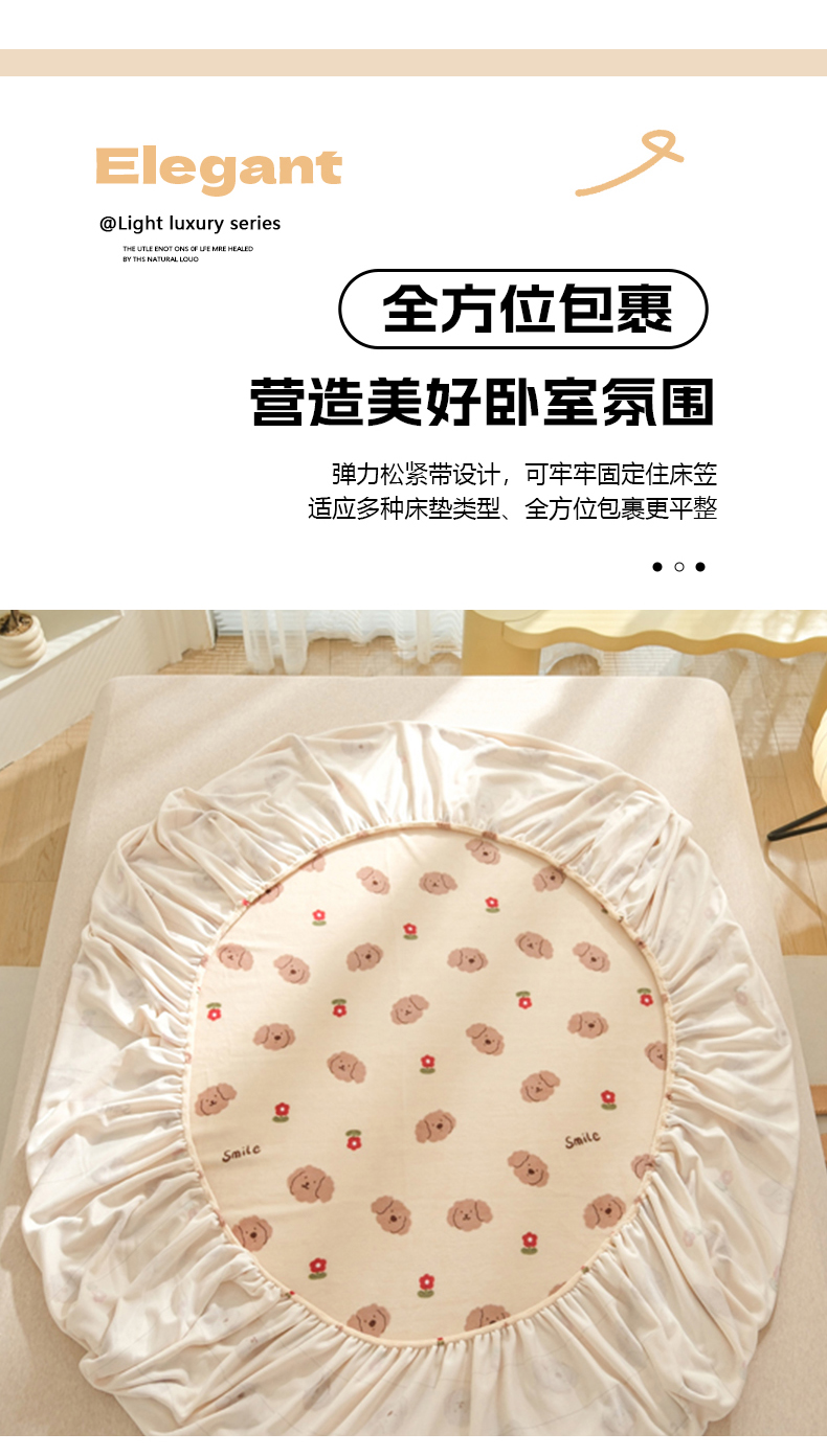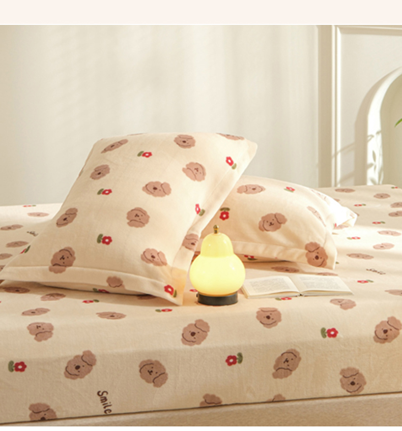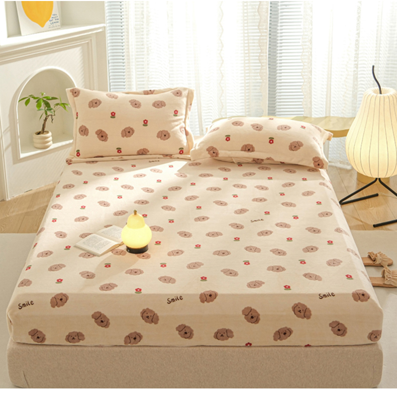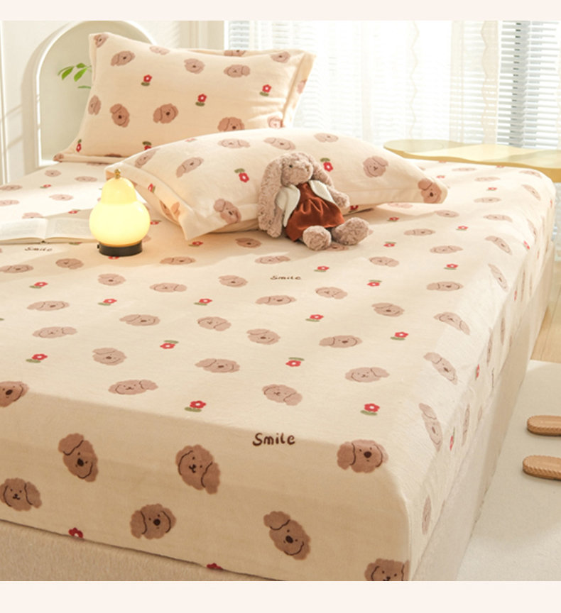 2025新款200g加厚超柔牛奶绒印花保暖床笠 小泰迪