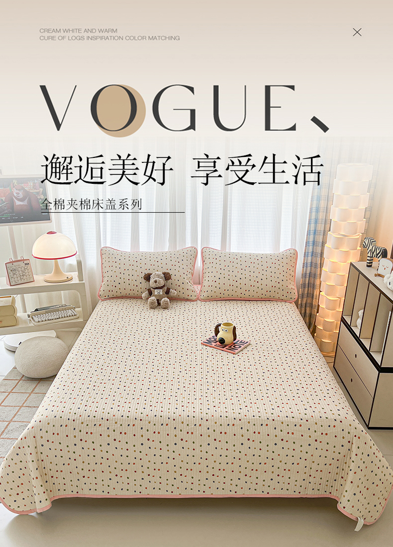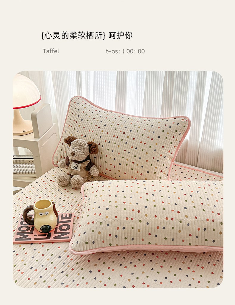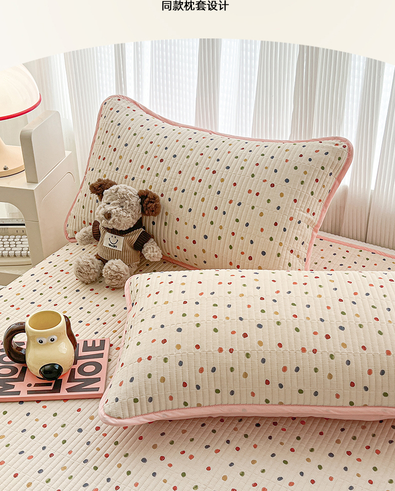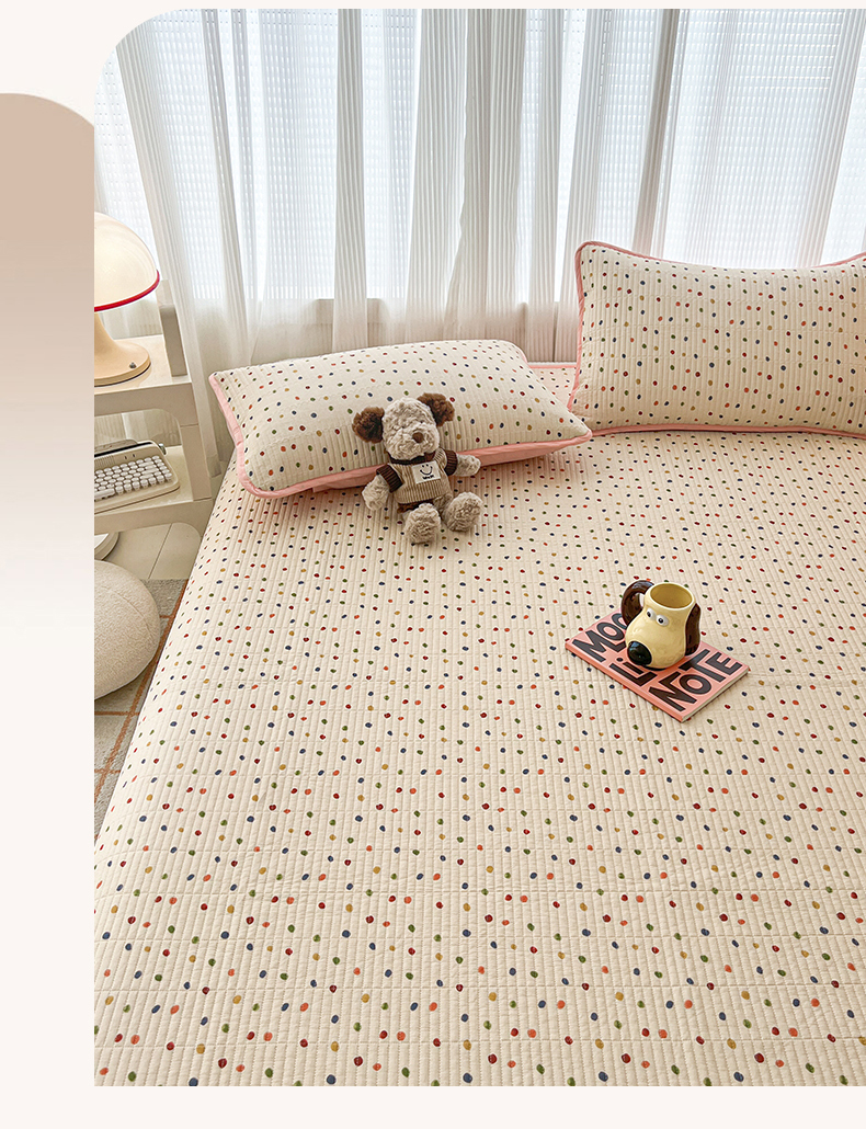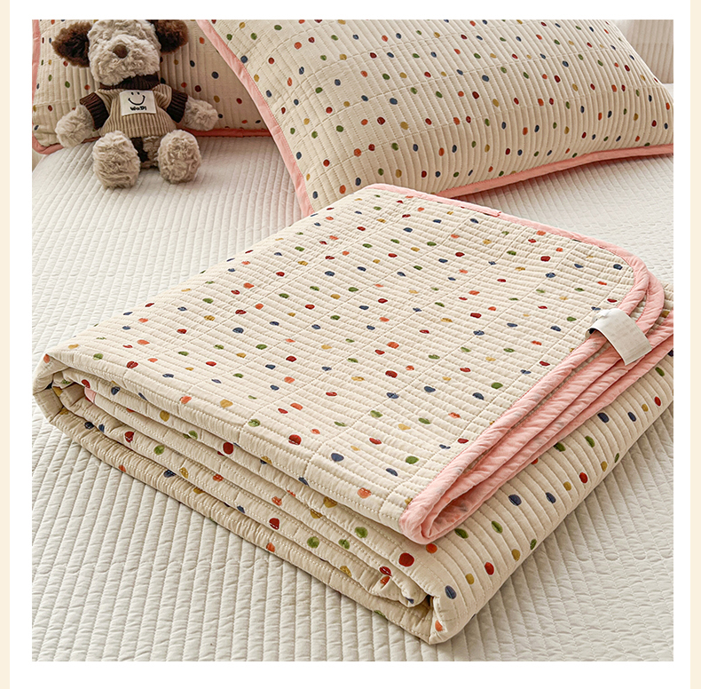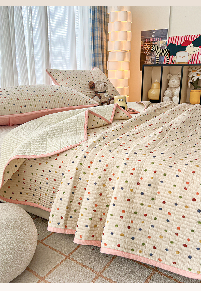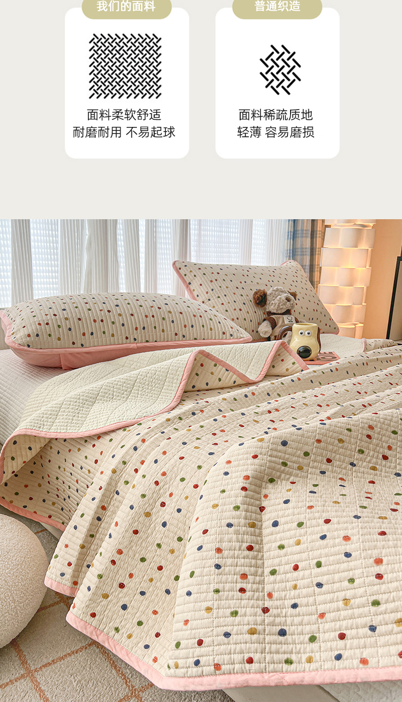 茉夕家纺 2024新款跑量款纯棉单面棉高温水洗床盖 缤纷点点