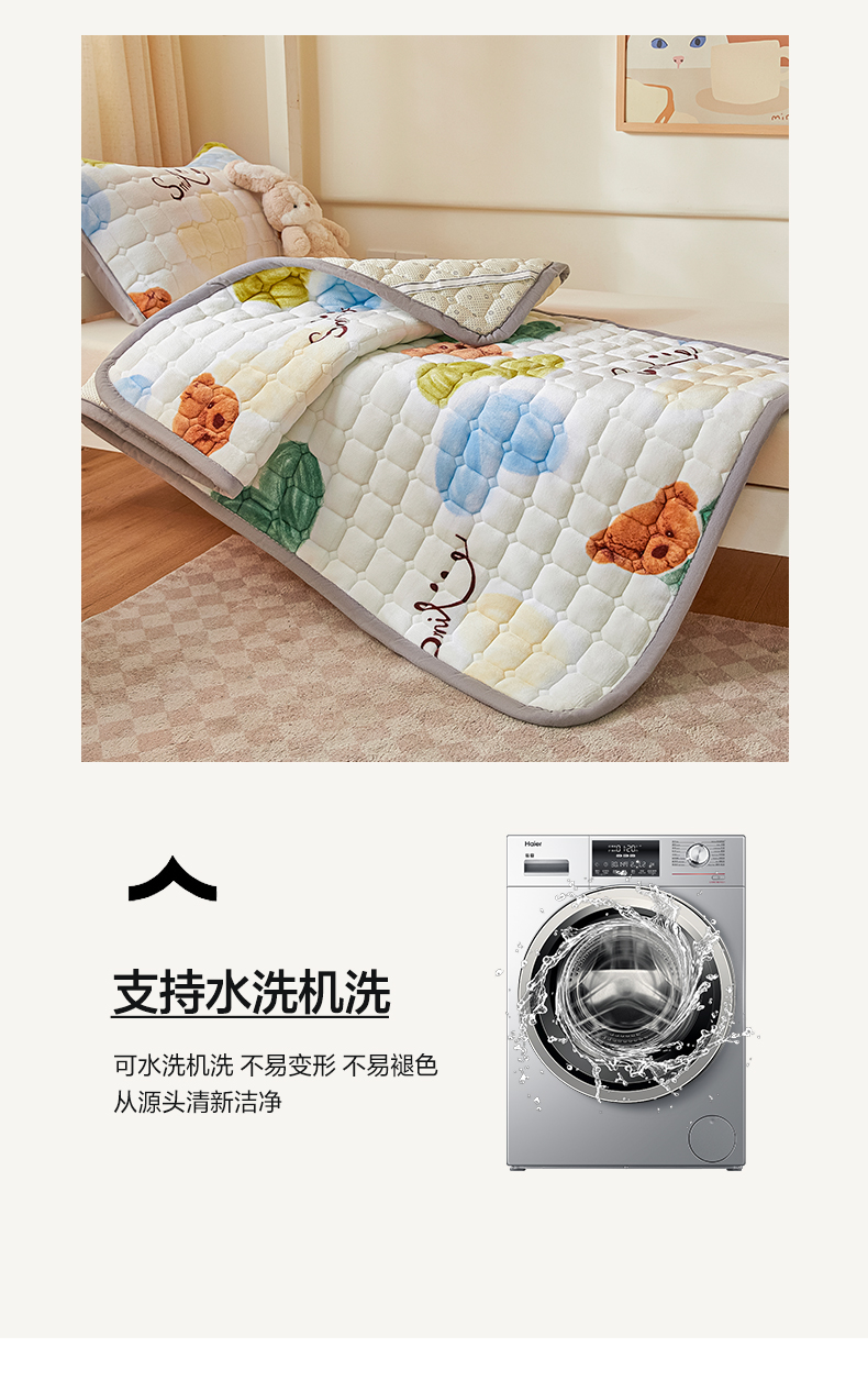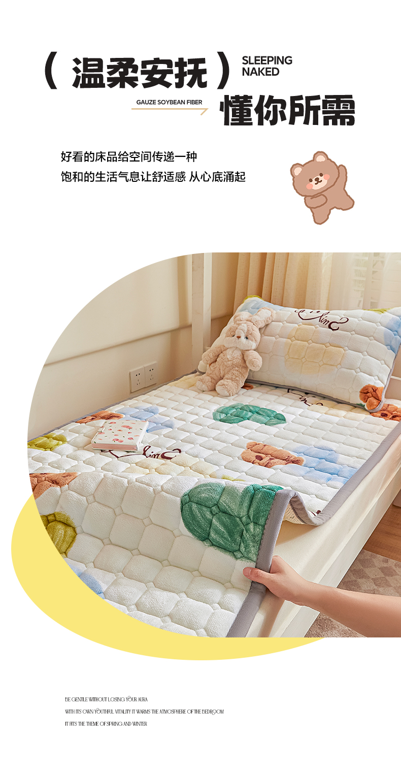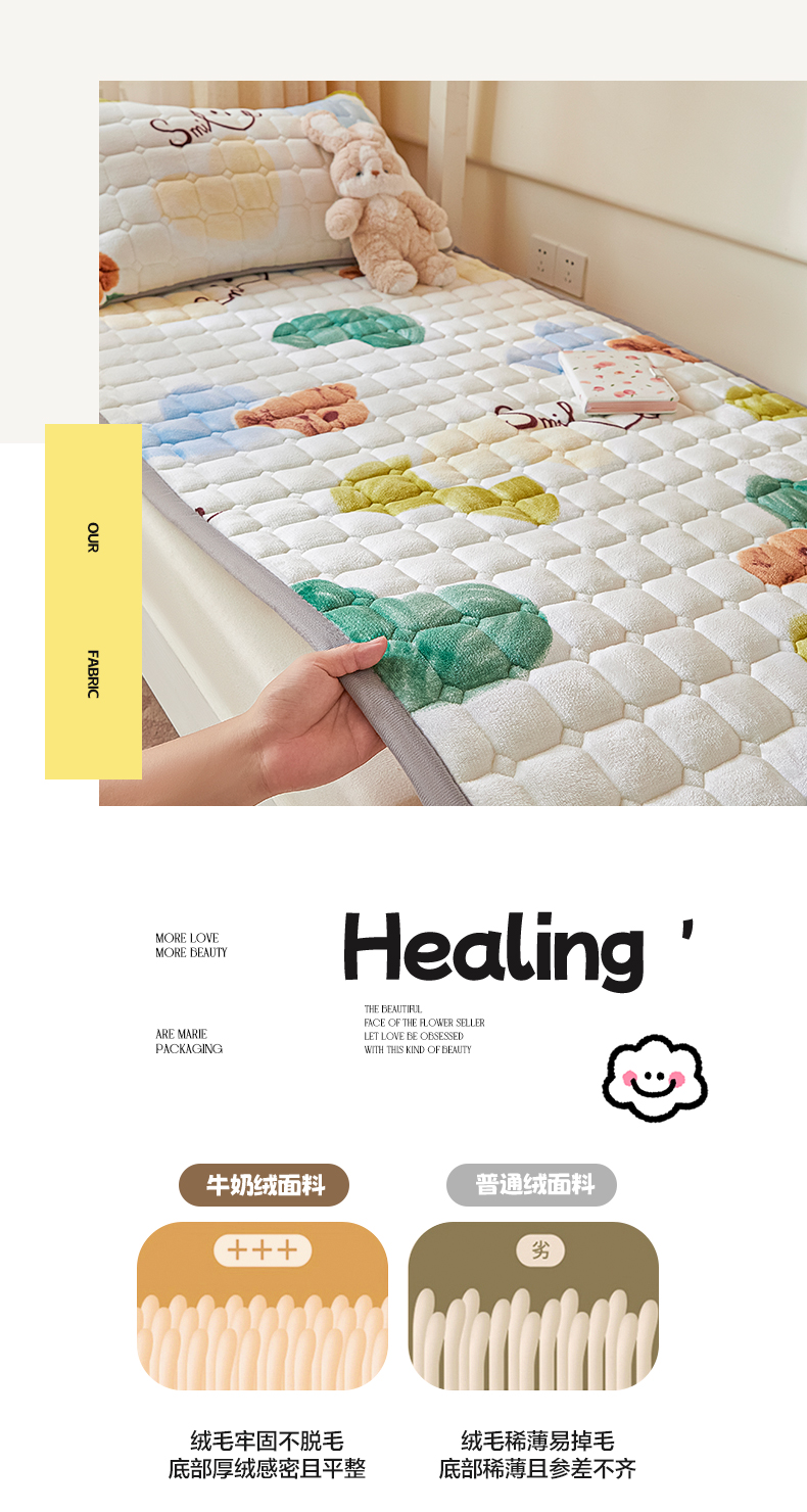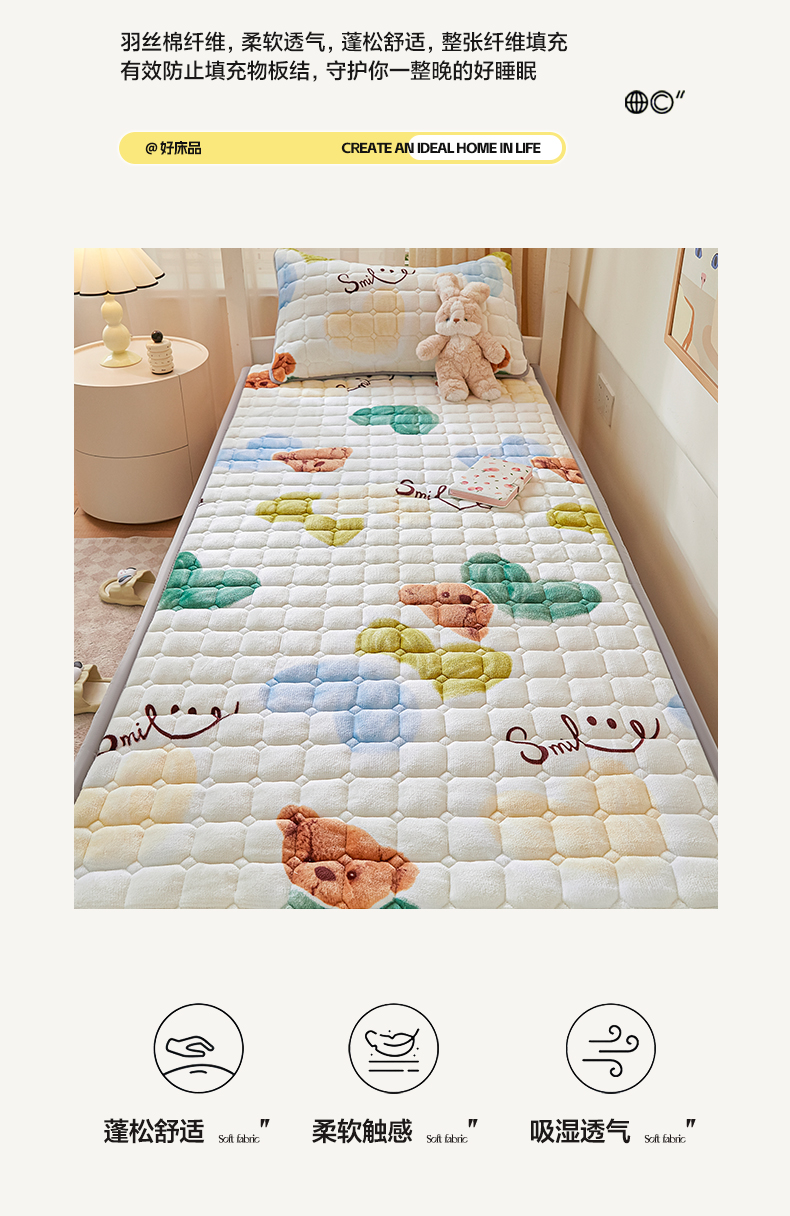 商品名称:卡伦家纺 2025新款A类牛奶绒夹棉加厚床垫学生宿舍单人床垫 爱心熊
