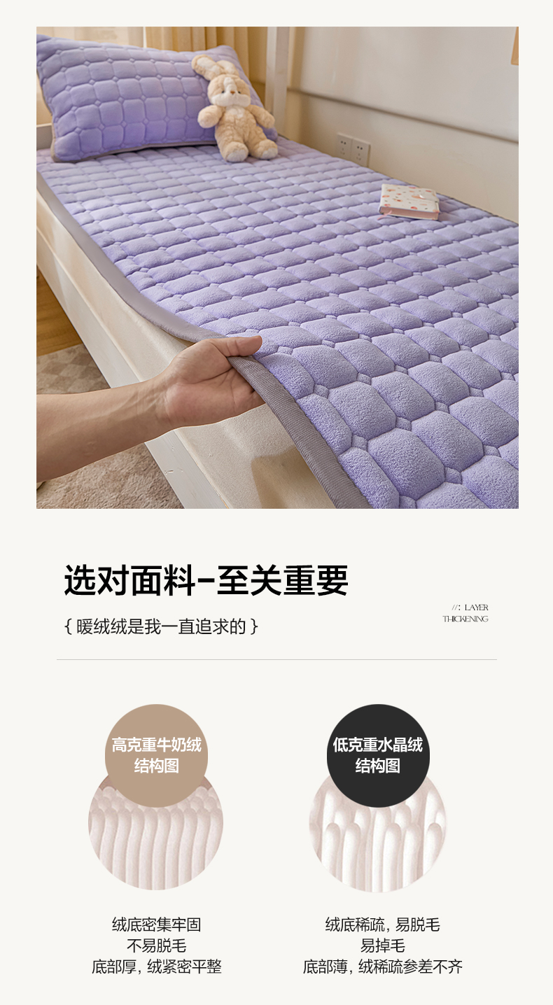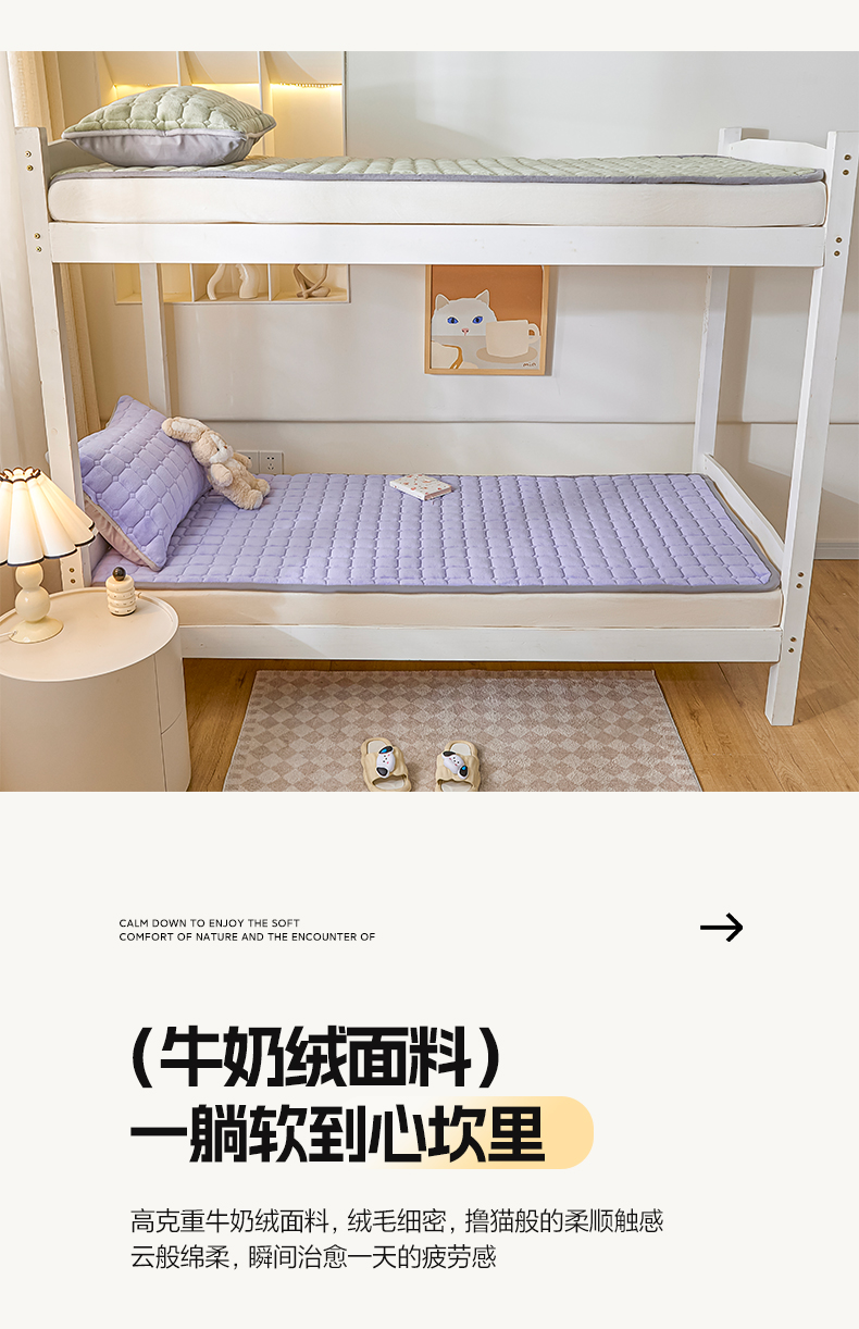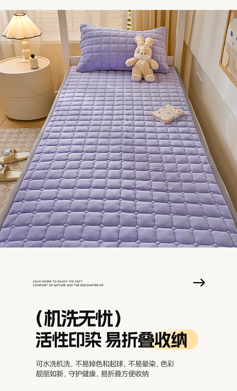 商品名称:卡伦家纺 2025新款A类牛奶绒夹棉加厚床垫学生宿舍单人床垫 高雅紫