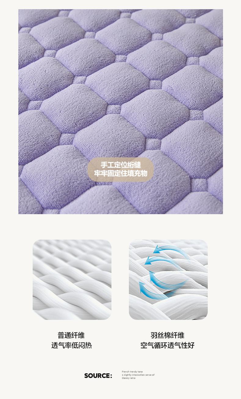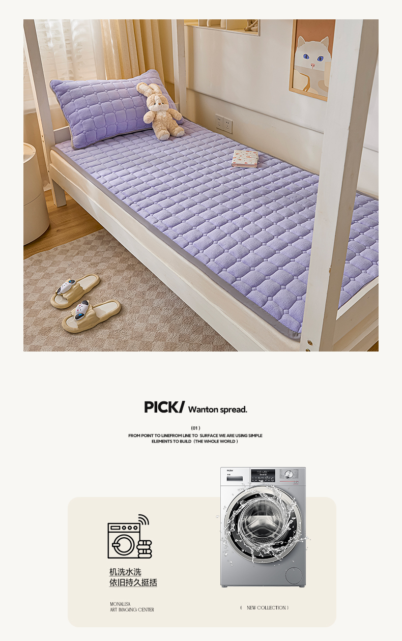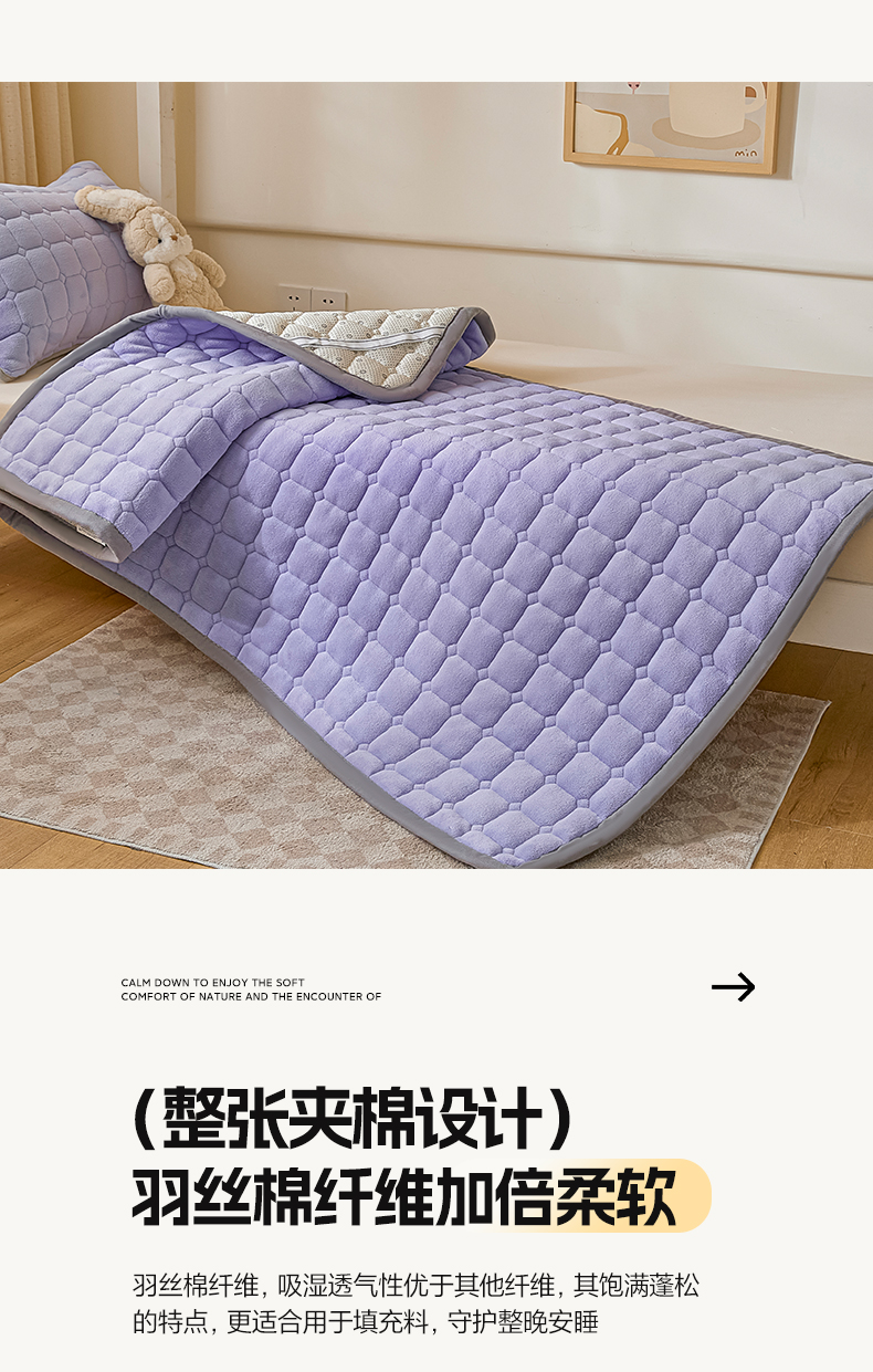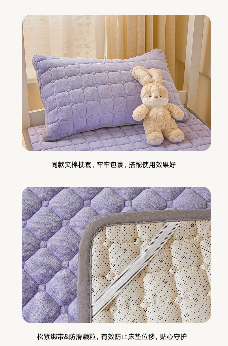 商品名称:卡伦家纺 2025新款A类牛奶绒夹棉加厚床垫学生宿舍单人床垫 高雅紫