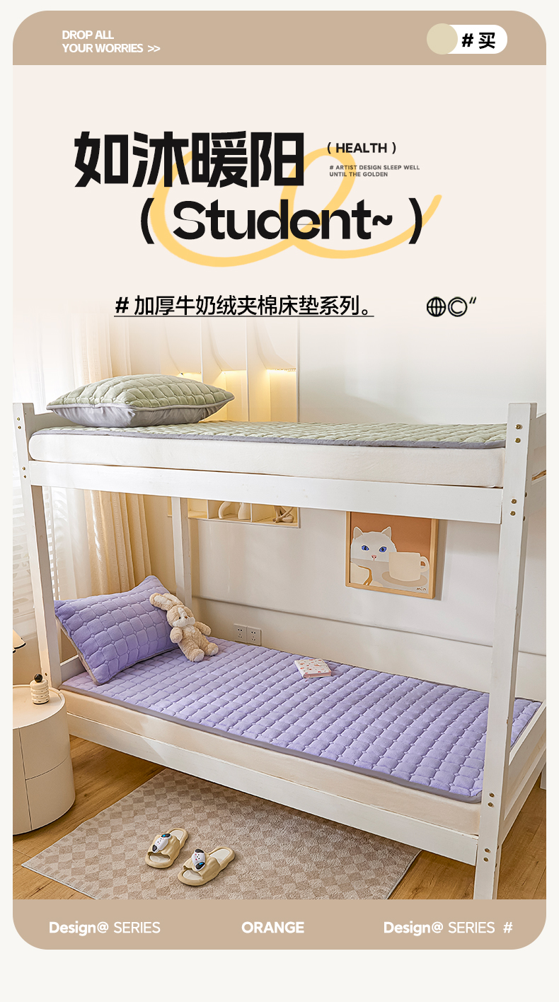卡伦家纺 2025新款A类牛奶绒夹棉加厚床垫学生宿舍单人床垫 高雅紫