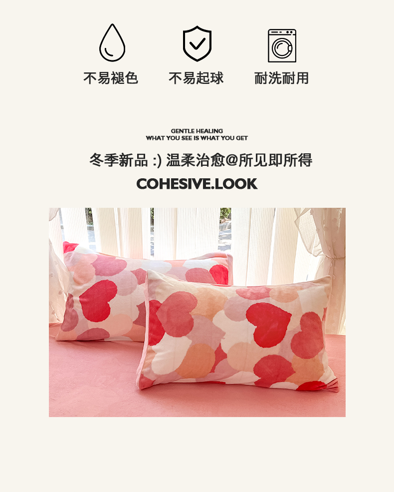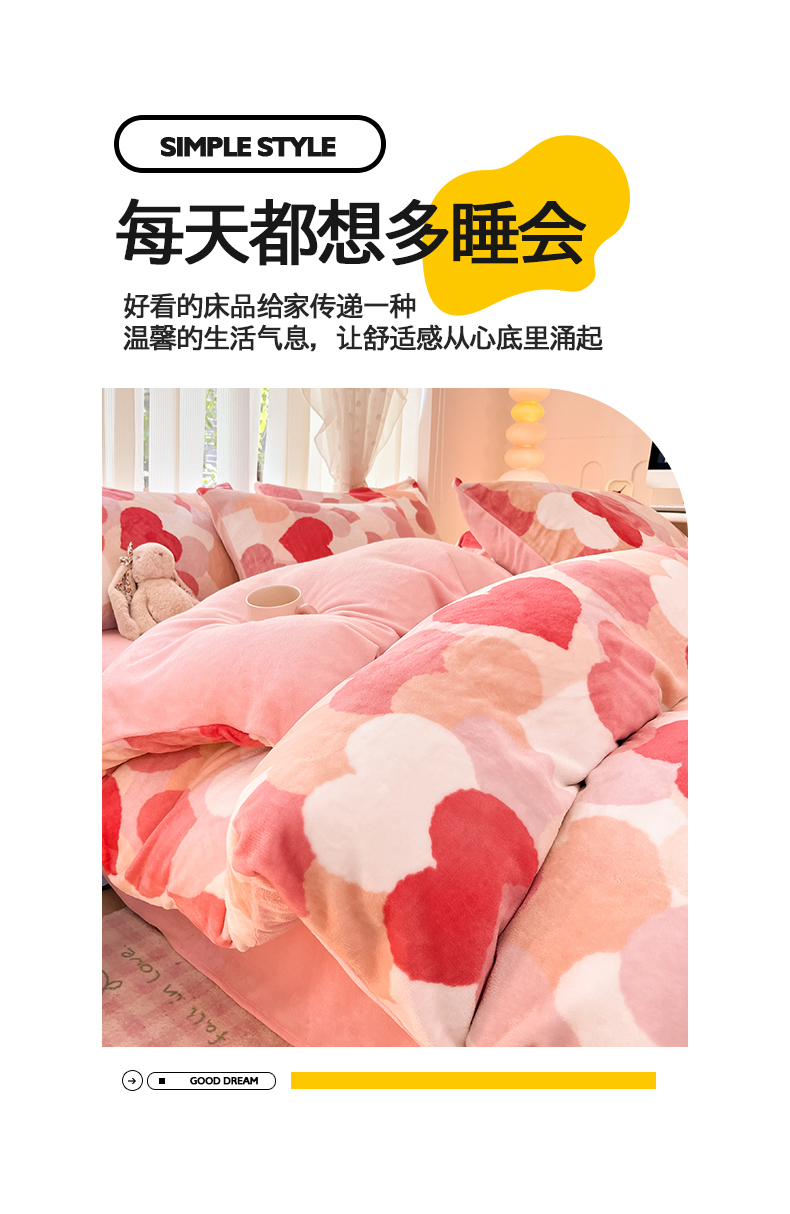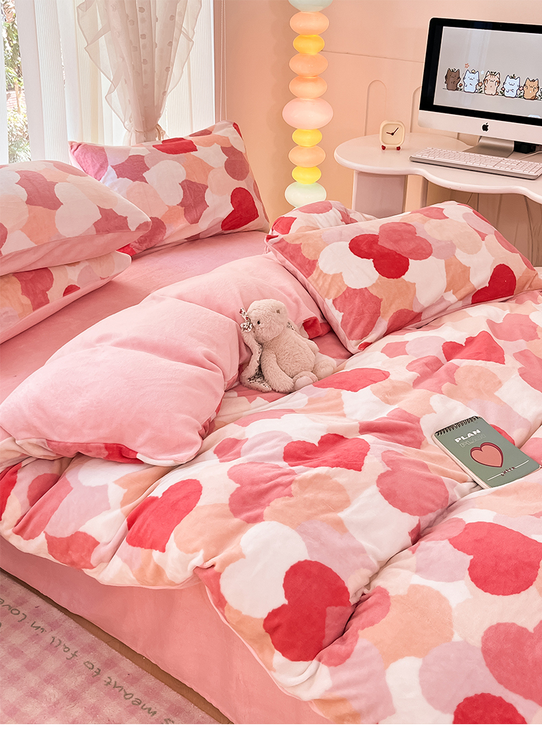 桃子家居 2024新款ins小清新花卉少女卡通跑量牛奶绒系列四件套 绒-爱心满满