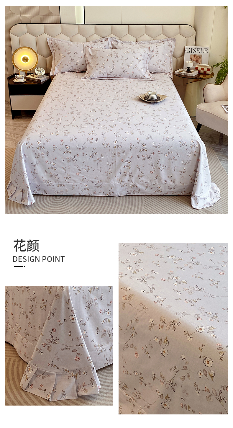 202新款全棉磨毛印花套件单品系列-单床单 花颜