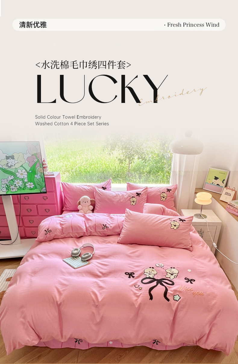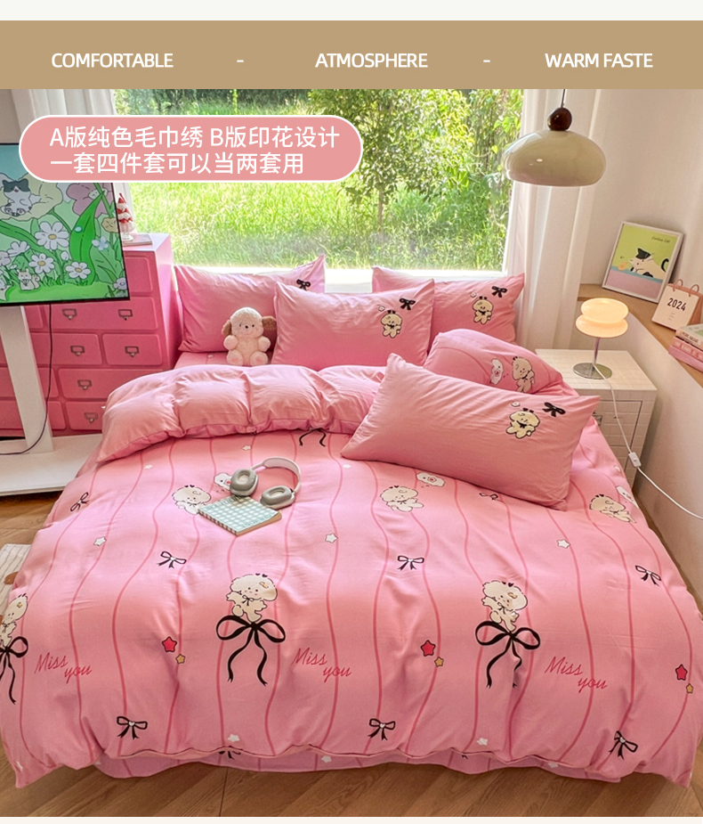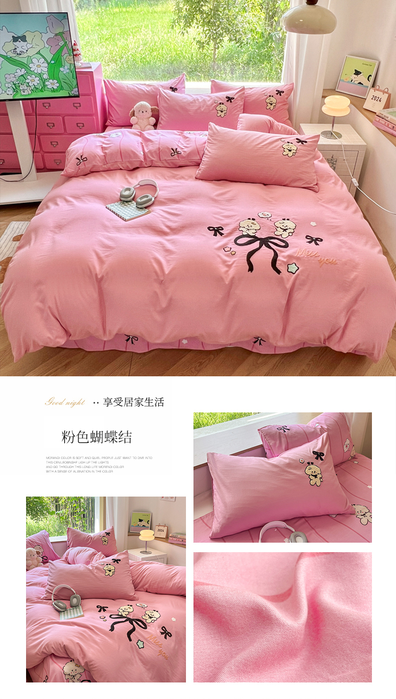 当前位置: 91家纺网 > 商品网购 > 床品套件 > 四件套 > 水洗棉四件套 > 晚爱家纺 2025新款A类ins风毛巾绣超柔亲肤云朵棉四件套 粉色蝴蝶结