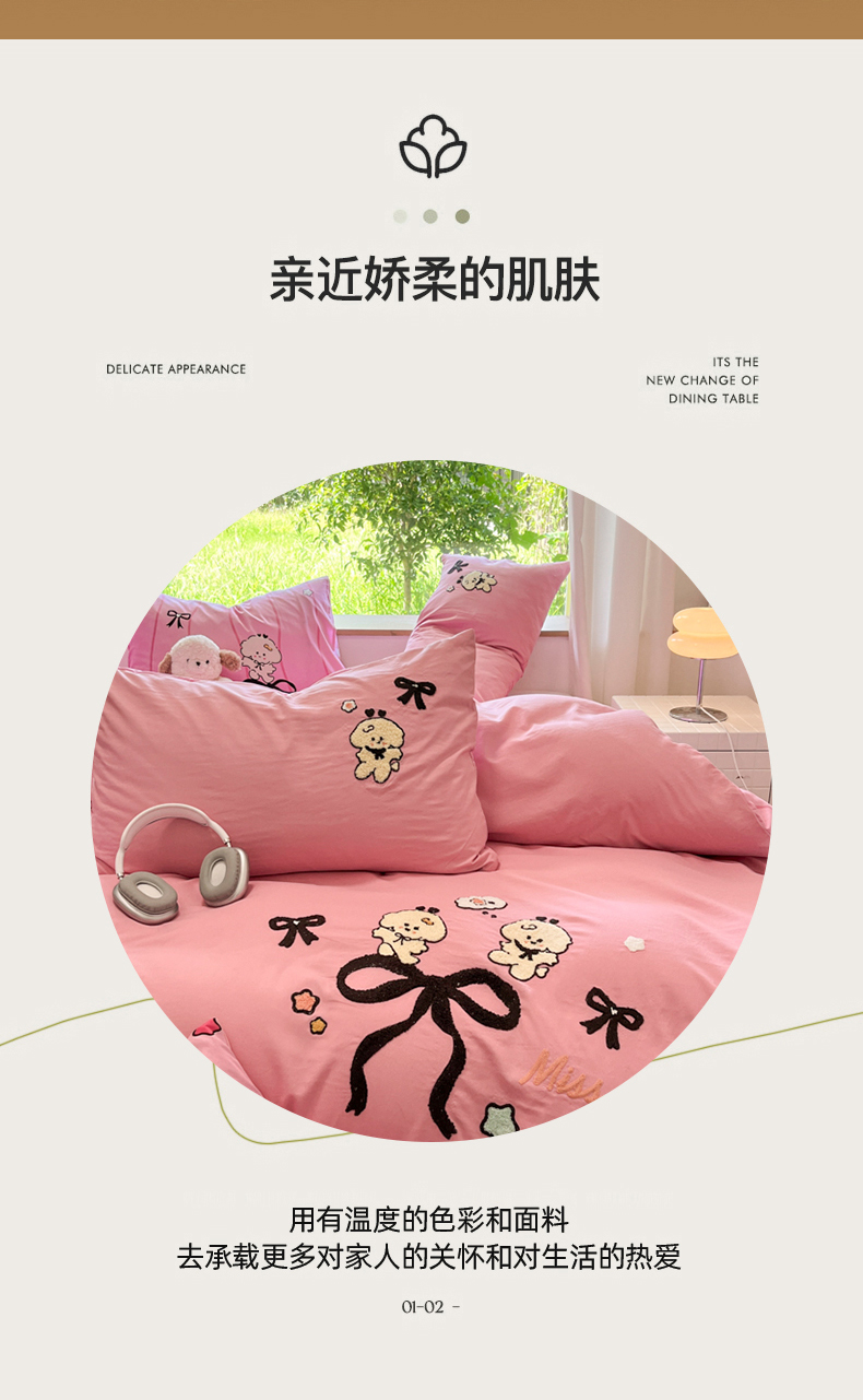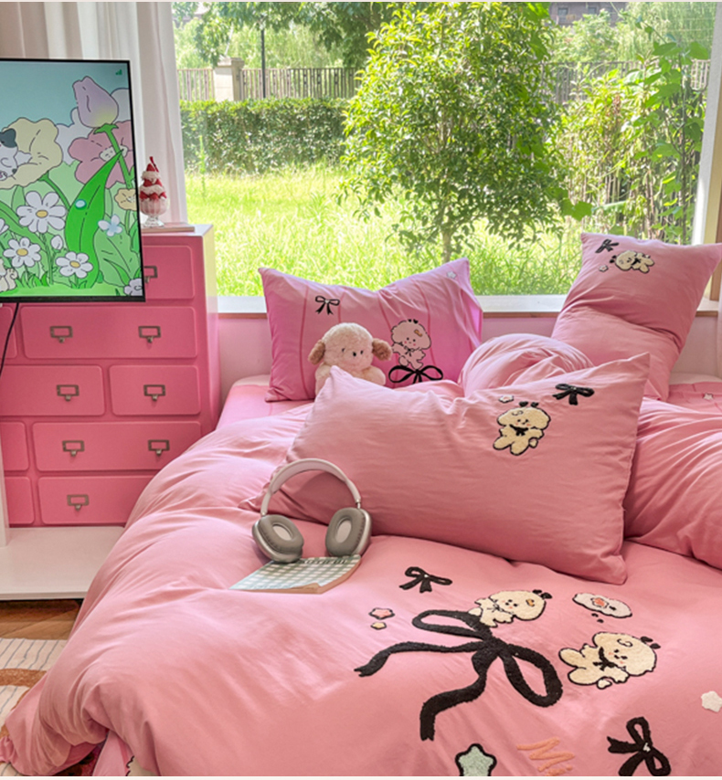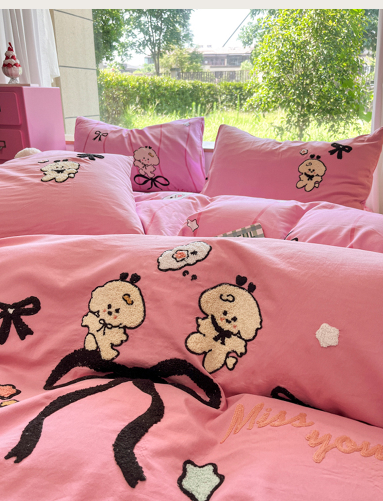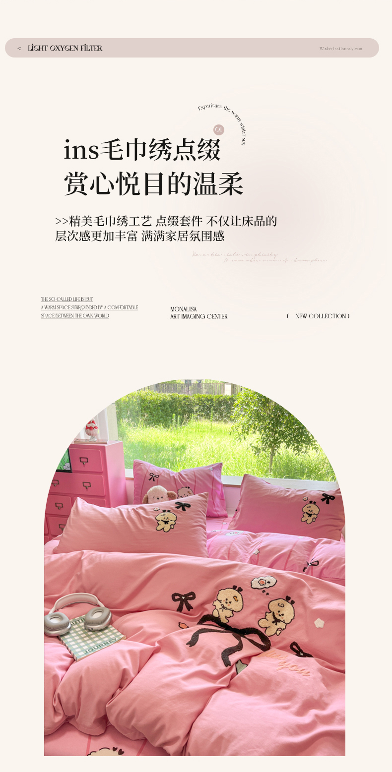 当前位置: 91家纺网 > 商品网购 > 床品套件 > 四件套 > 水洗棉四件套 > 晚爱家纺 2025新款A类ins风毛巾绣超柔亲肤云朵棉四件套 粉色蝴蝶结