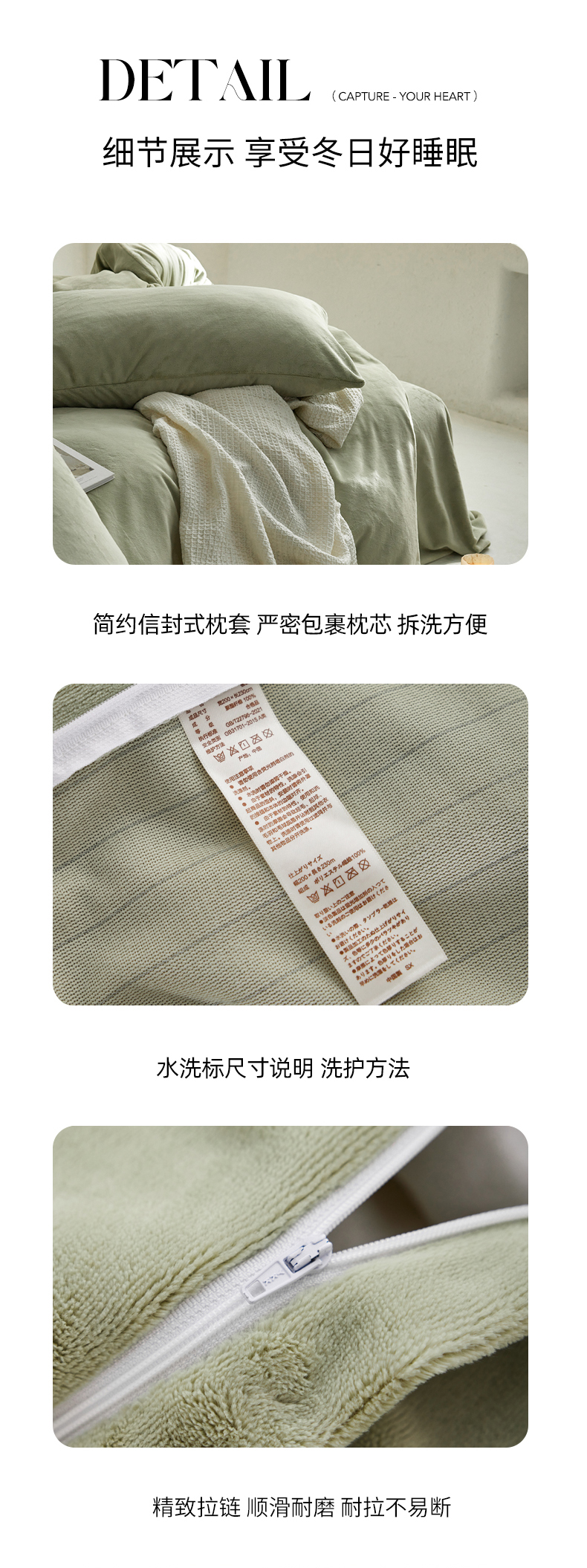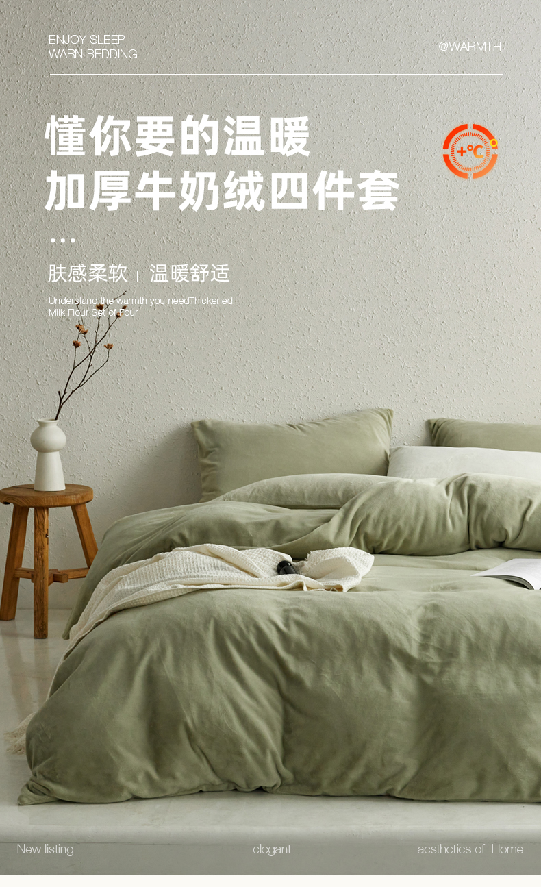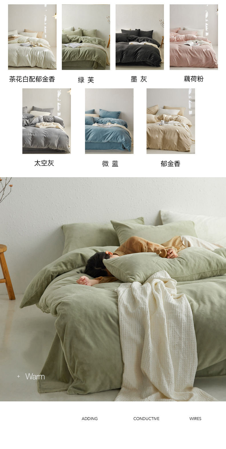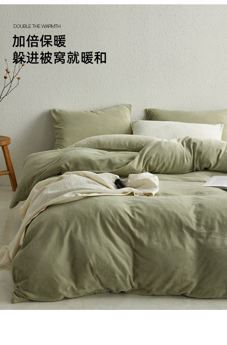 商品名称:千朵森 2024新款高克重纯色牛奶绒四件套 绿芙