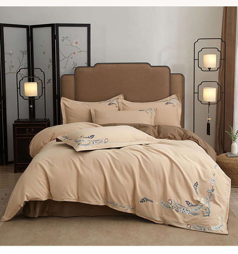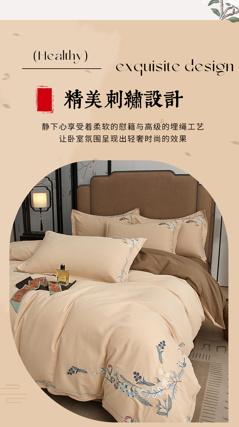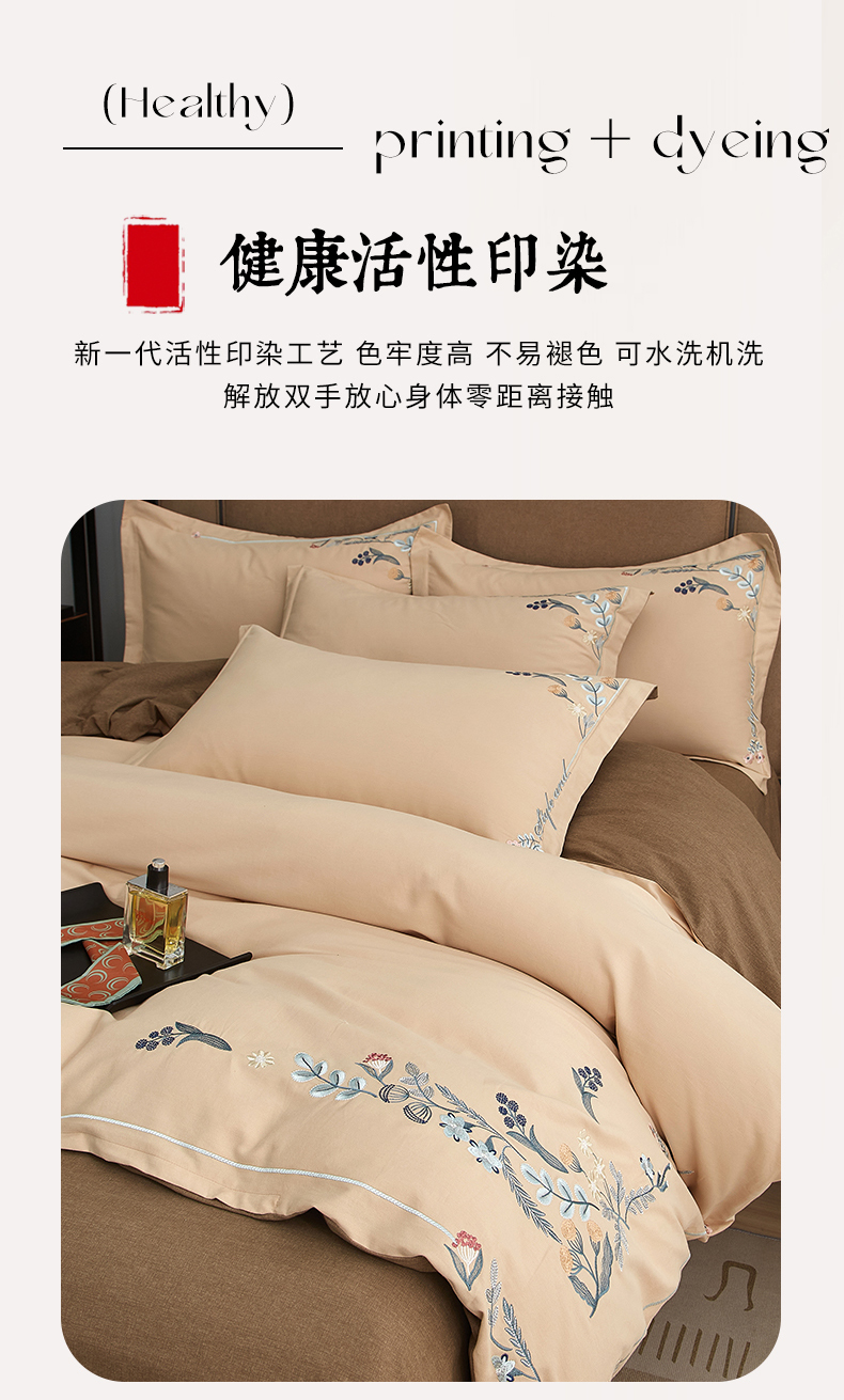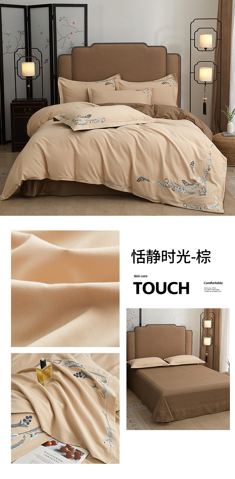 商品名称:金纱玉纺家纺 2024新款百分之百全棉新款轻奢刺绣四件套-恬静时光 恬静时光-棕