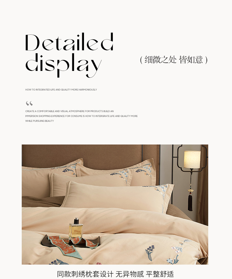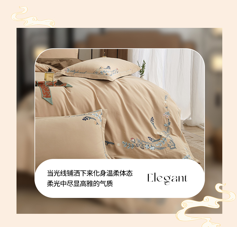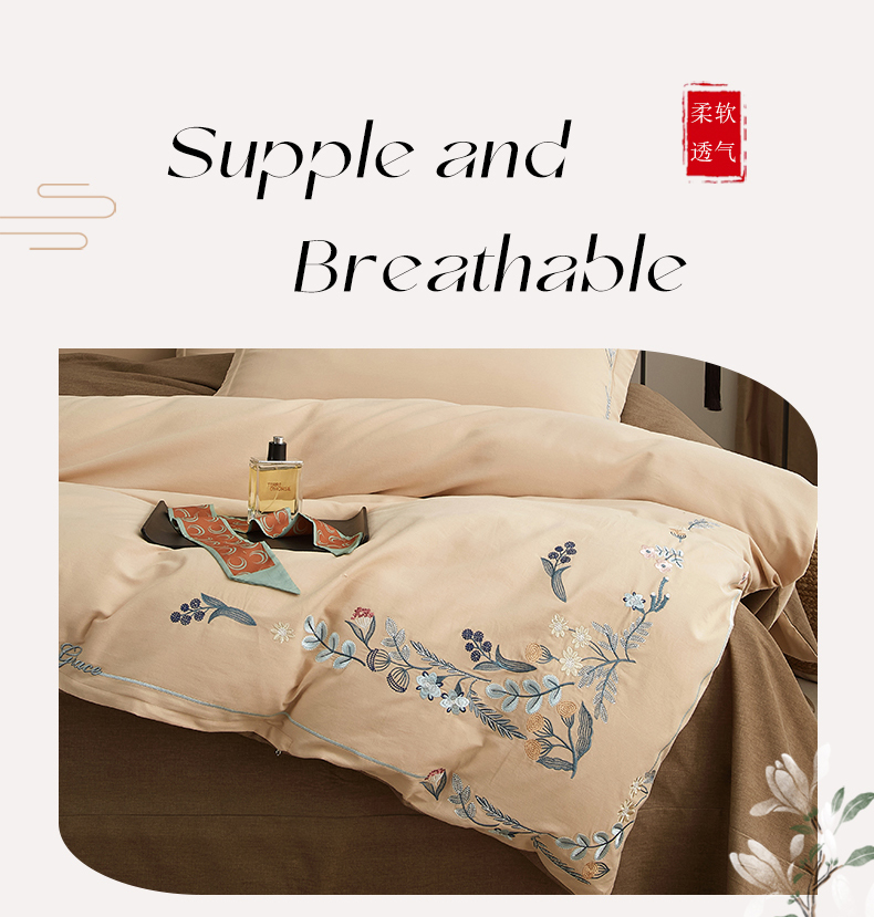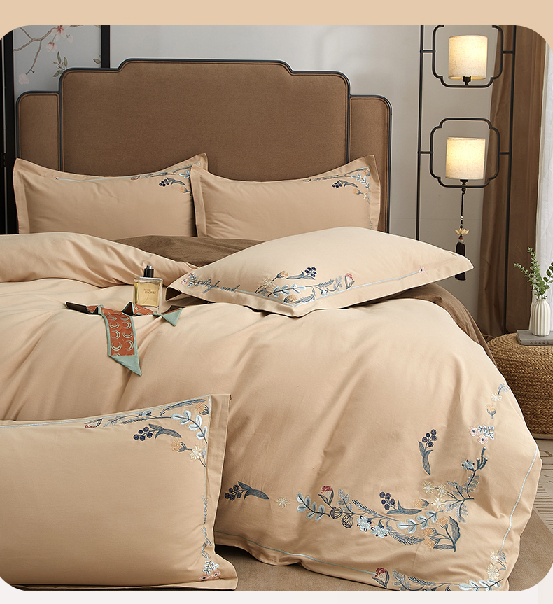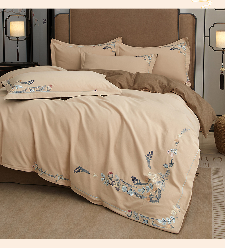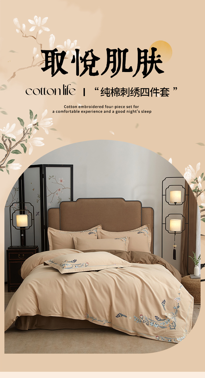 商品名称:金纱玉纺家纺 2024新款百分之百全棉新款轻奢刺绣四件套-恬静时光 恬静时光-棕