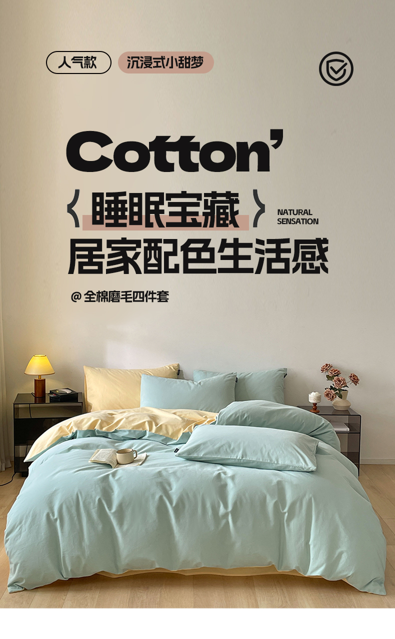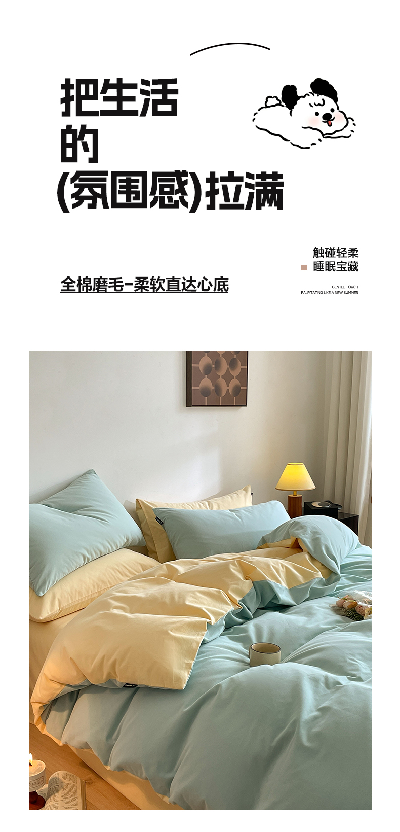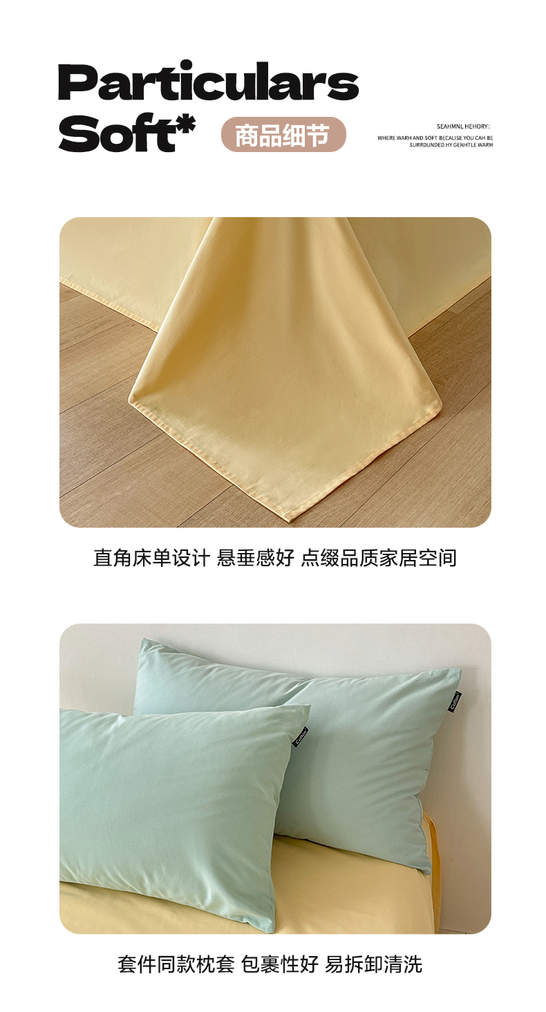 当前位置: 91家纺网 > 商品网购 > 床品套件 > 四件套 > 全棉普通四件套 > 涵宸家纺 2024新款全棉磨毛四件套纯厚系列(简)-四件套 纯厚(爱琴海+黄)