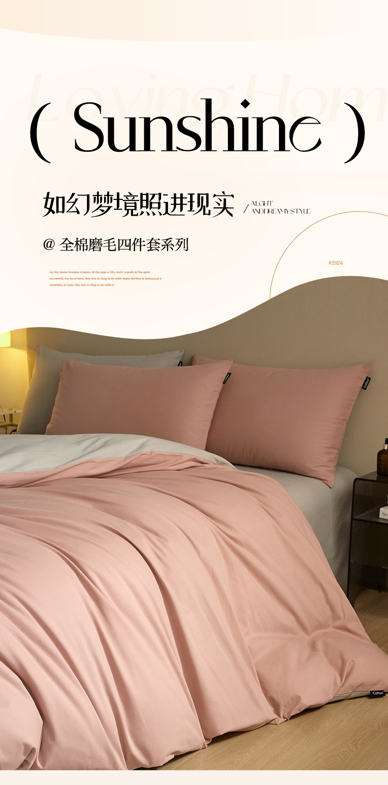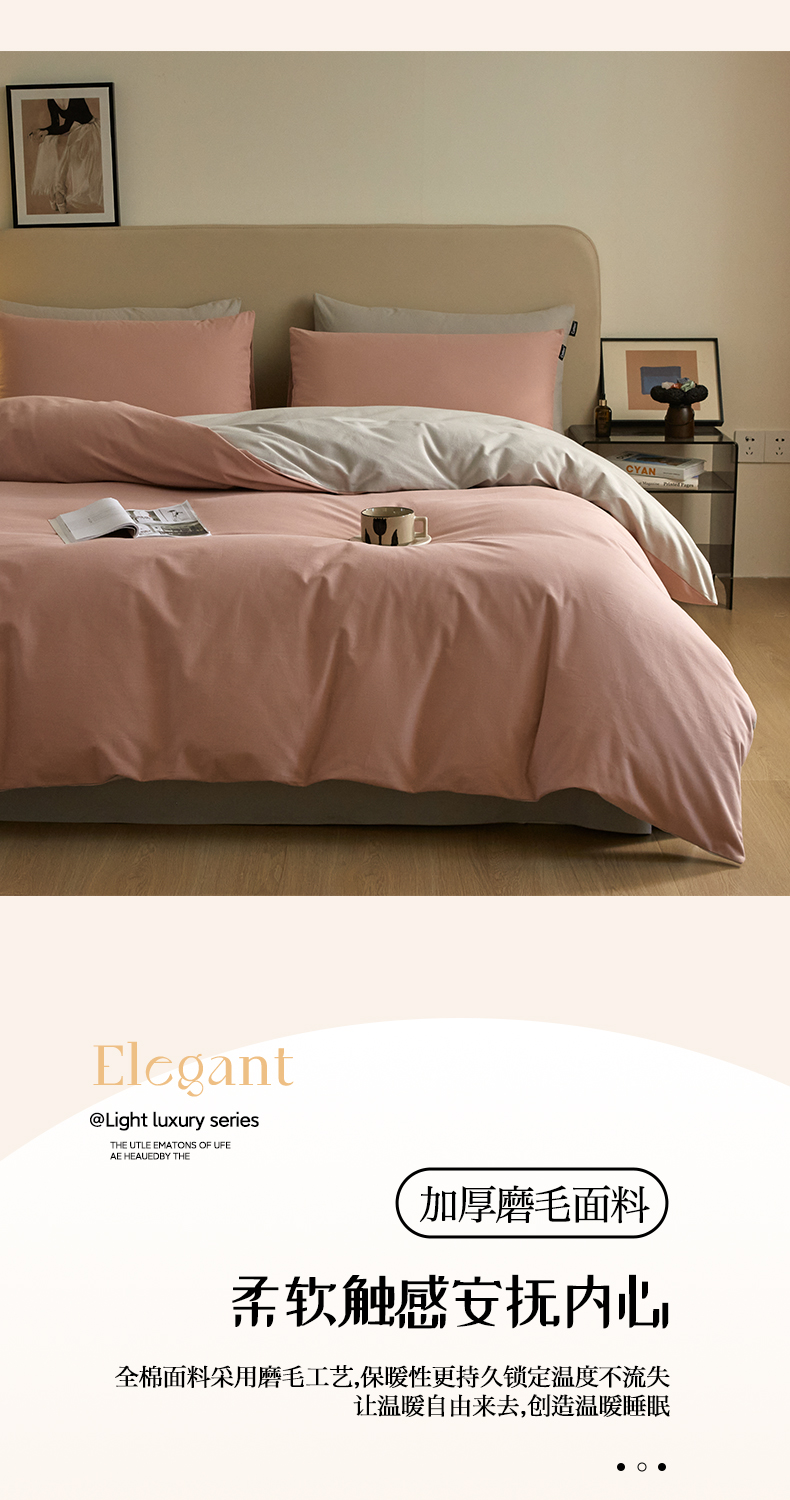 当前位置: 91家纺网 > 商品网购 > 床品套件 > 四件套 > 全棉普通四件套 > 涵宸家纺 2024新款全棉磨毛四件套纯厚系列(轻)-四件套 纯厚(豆沙+漫灰)