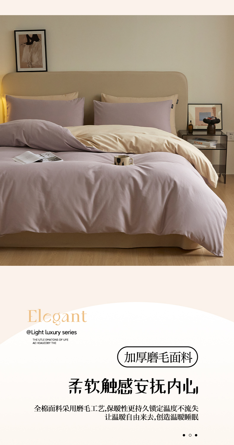 • 91家纺网 家纺一手货源 找家纺 涵宸家纺 2024新款全棉磨毛四件套纯厚系列(轻)-单被套 纯厚(星空紫+茶色)