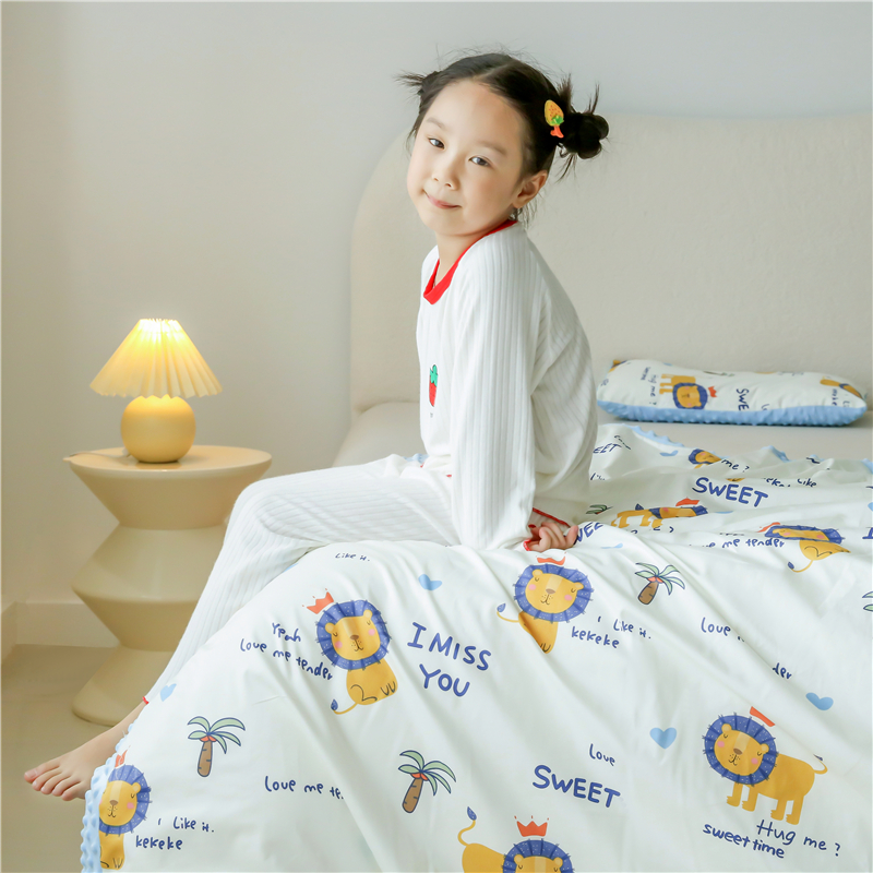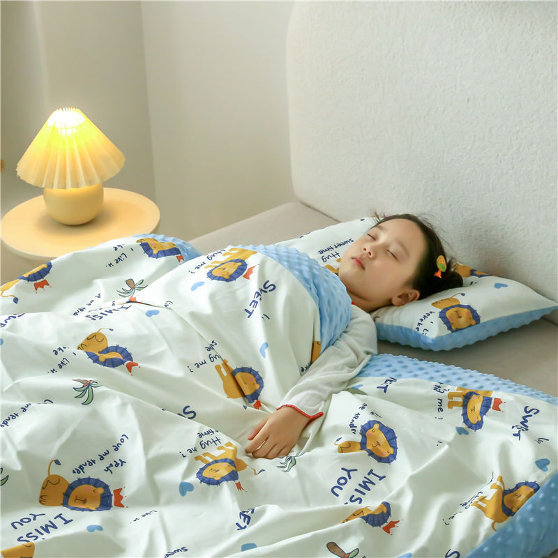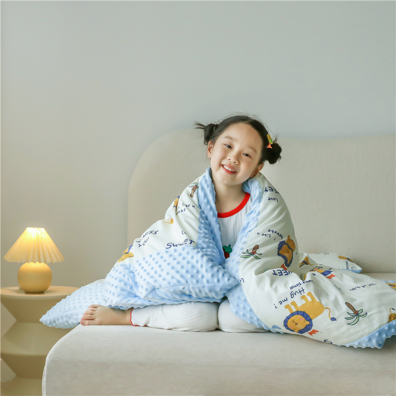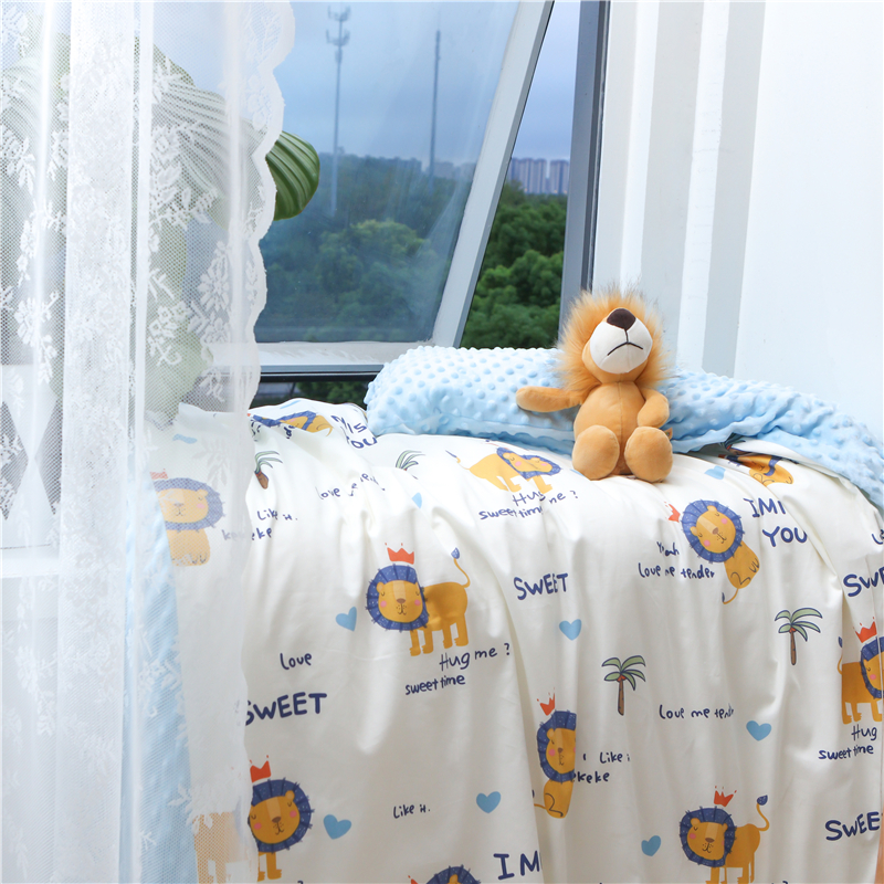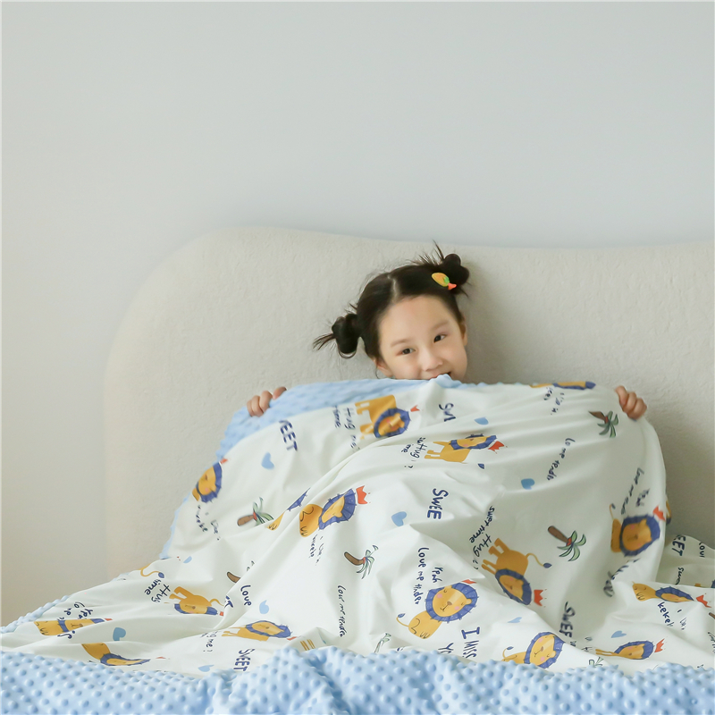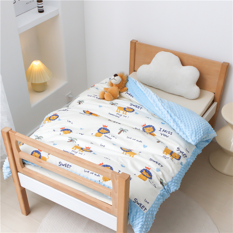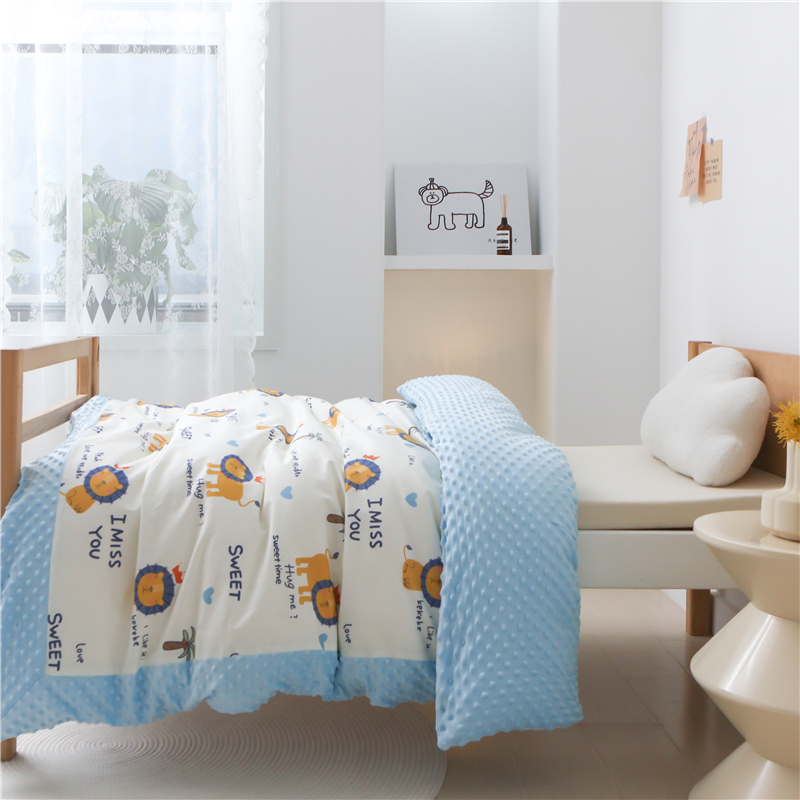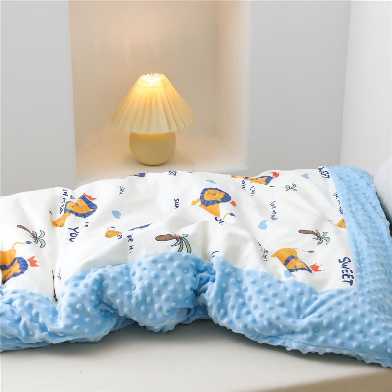 • 91家纺网 家纺一手货源 找家纺 艾佳宝贝 2024秋冬全棉豆豆绒儿童多功能可拆卸盖毯被套被子被芯 小狮子