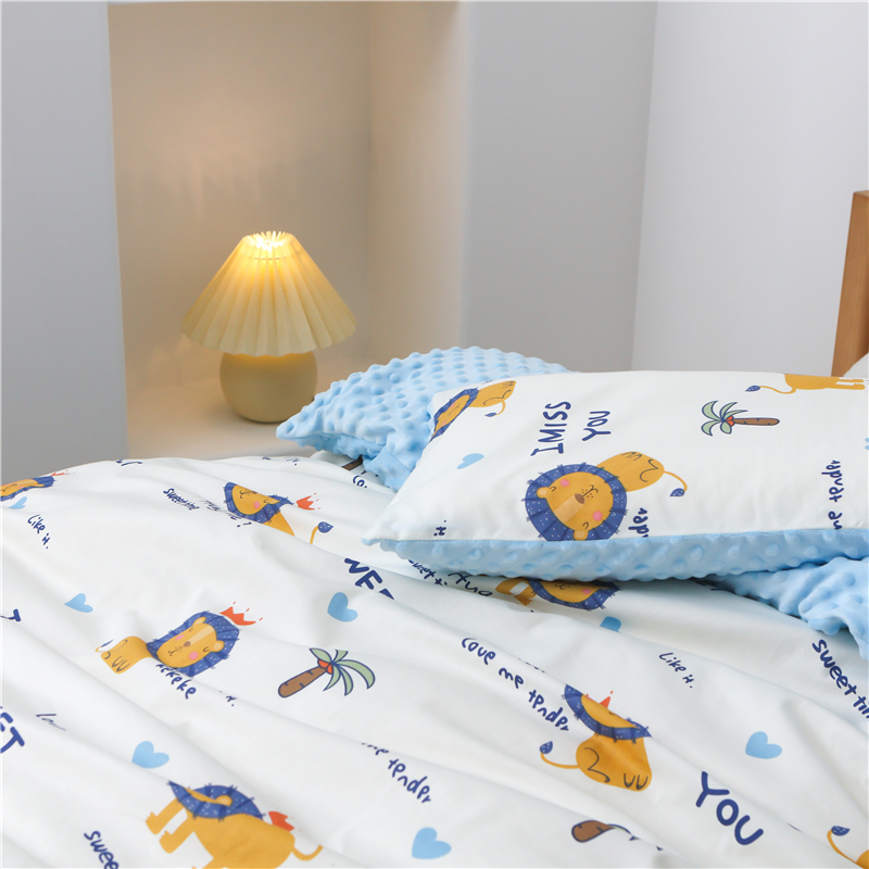 艾佳宝贝 2024秋冬全棉豆豆绒儿童多功能可拆卸盖毯被套被子被芯 小狮子