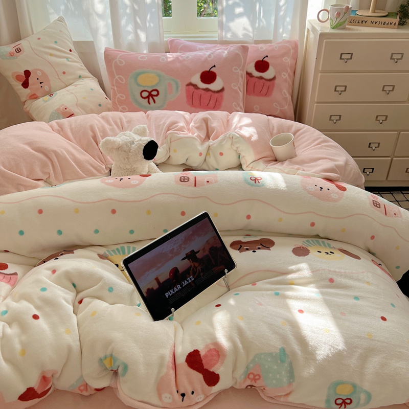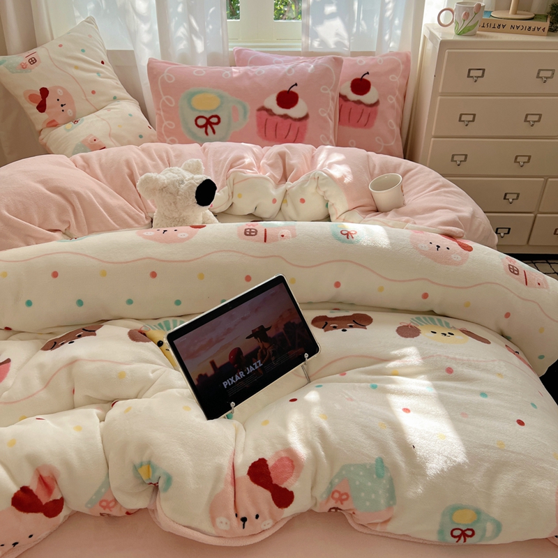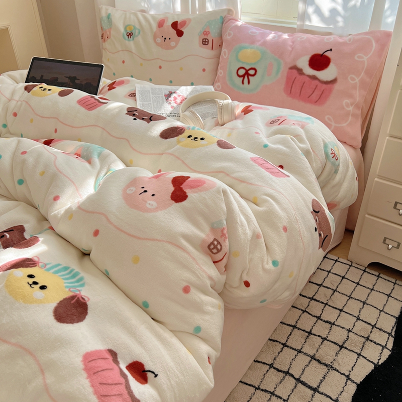 当前位置: 91家纺网 > 商品网购 > 床品套件 > 四件套 > 牛奶绒四件套 > 桃喜 2024新秋冬新品卡通混搭牛奶绒系列四件套 波点动物园(牛奶绒)