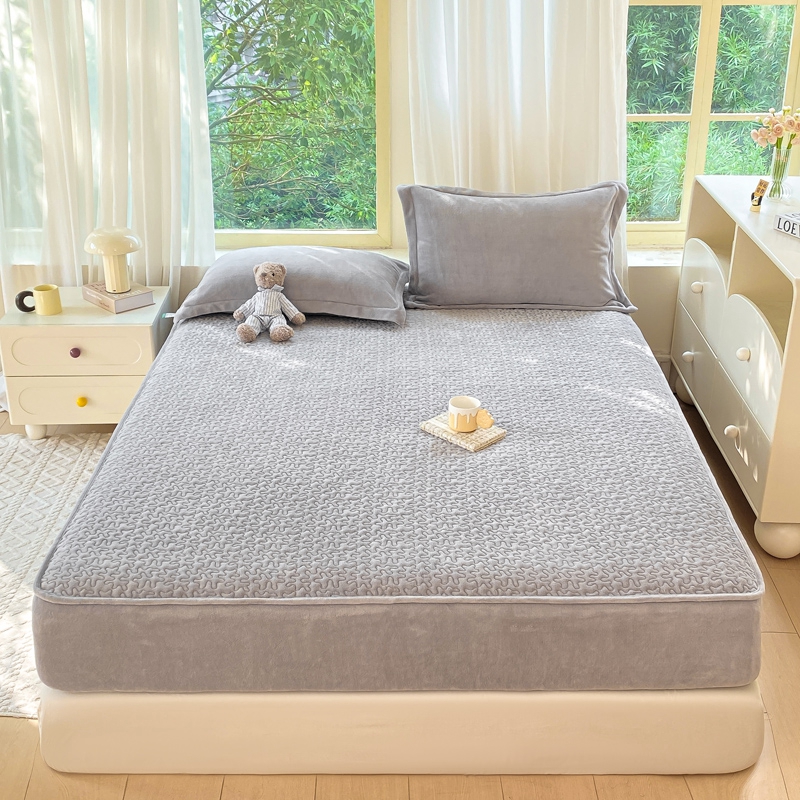 • 91家纺网 家纺一手货源 找家纺 赫梵茜 2024新款高克重安抚豆豆被套牛奶绒夹棉床笠四件套 新款灰色