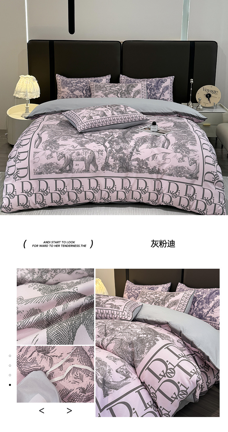 商品名称:花沐家居 2024新款亲肤云朵棉四件套加厚印花高克重磨毛四件套直播爆款 灰粉迪